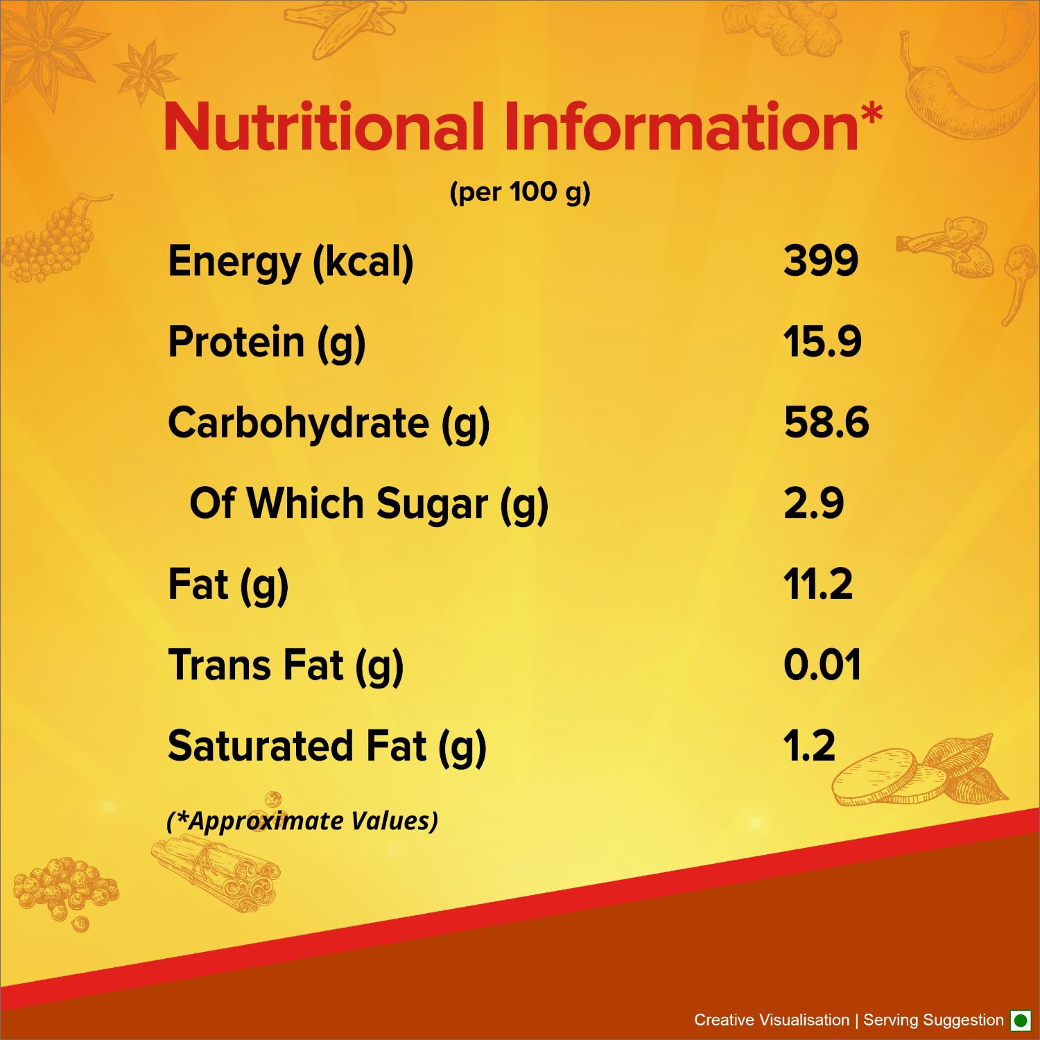 High quality and exotic ingredients like star anise, cassia, nutmeg, mace and black cardamom are ground together to provide a perfect blend of aroma and taste to all your dishes.The ingredient spices are sourced locally from across India and selected by experts to ensure the right aroma, pungency and quality. The pack consists of "Aroma Locked Technology" which ensures that the product has long lasting freshness.