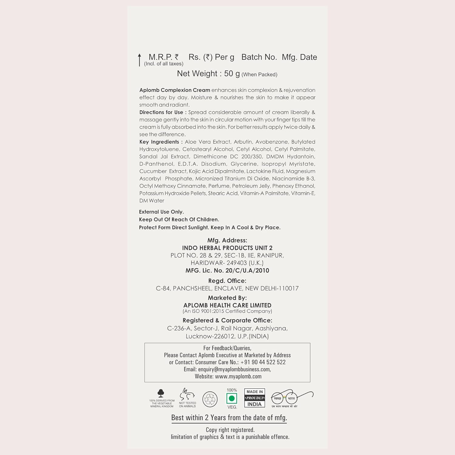 - 100% Natural Formulation: Made with pure, natural ingredients, Aplomb Complexion Cream ensures gentle and safe care for your skin.