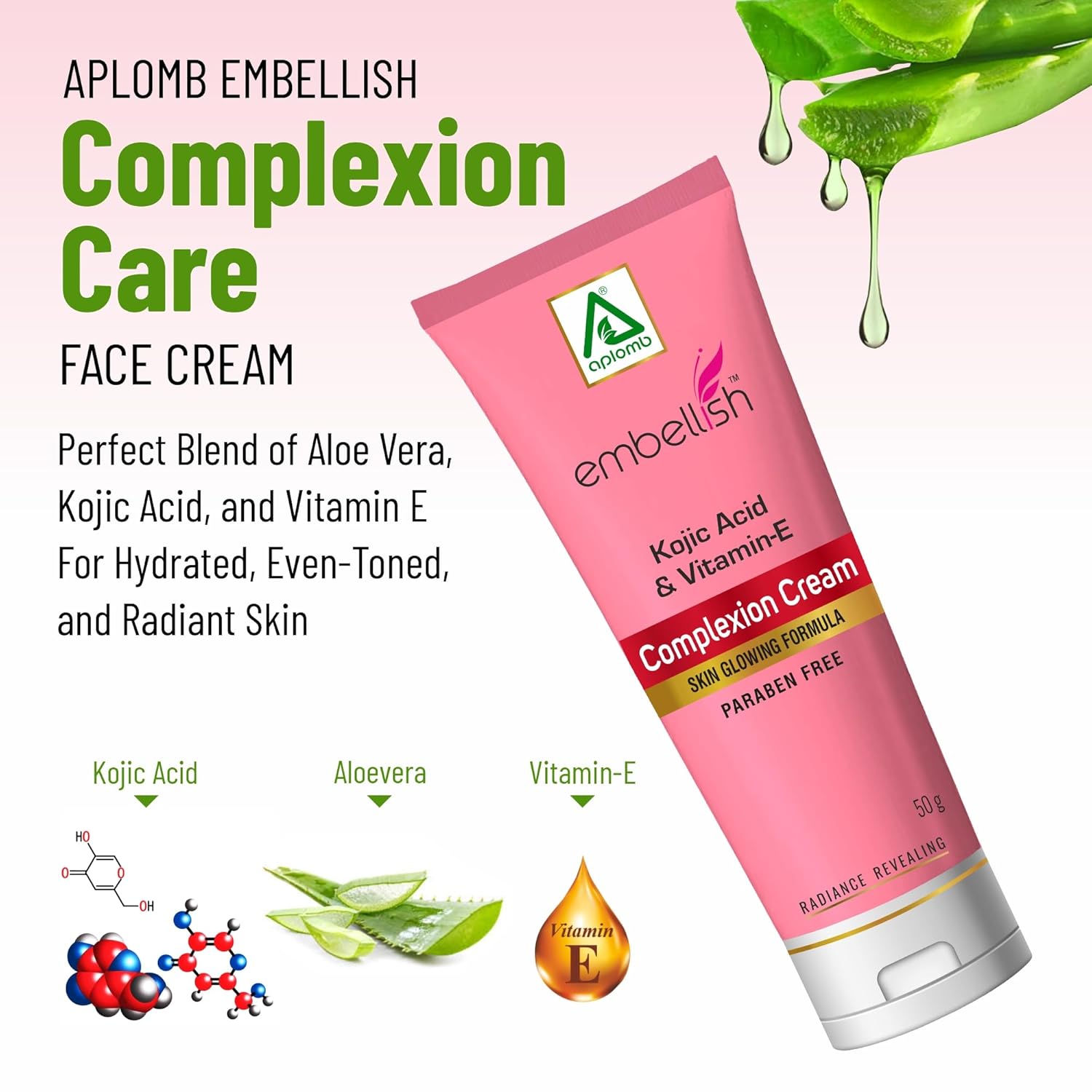 Aplomb Embellish Complexion Care Face Cream | Perfectly Blend of Alovera, Kojic Acid And Vitamin-E | For Hydrated Even-toned & Radiant Skin | Dry to Combination Skin (50 gm)