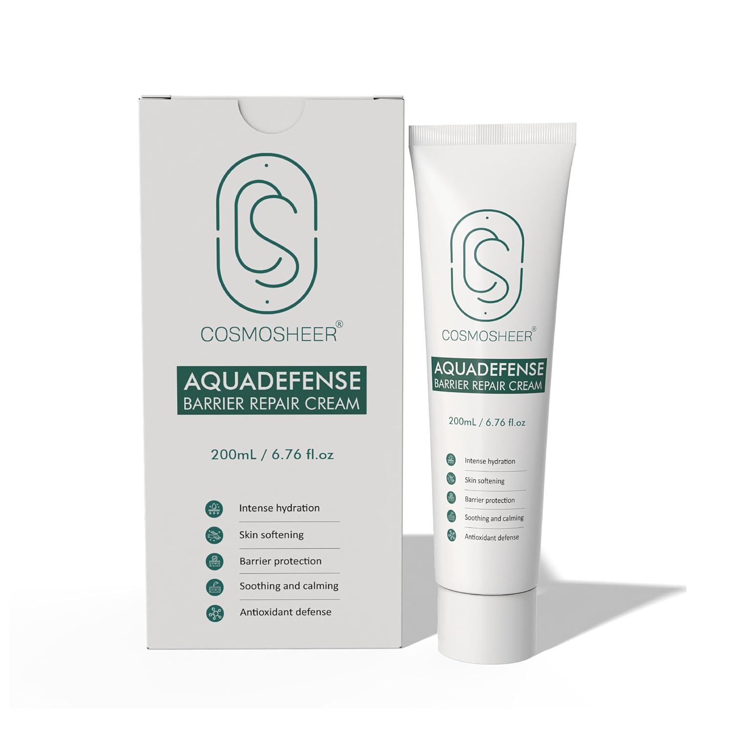 Cosmosheer AquaDefense Barrier Repair Cream with Shea Butter, Glycerin & Vitamin E, 48-Hour Hydration & Skin Barrier Support, Lightweight Moisturizer