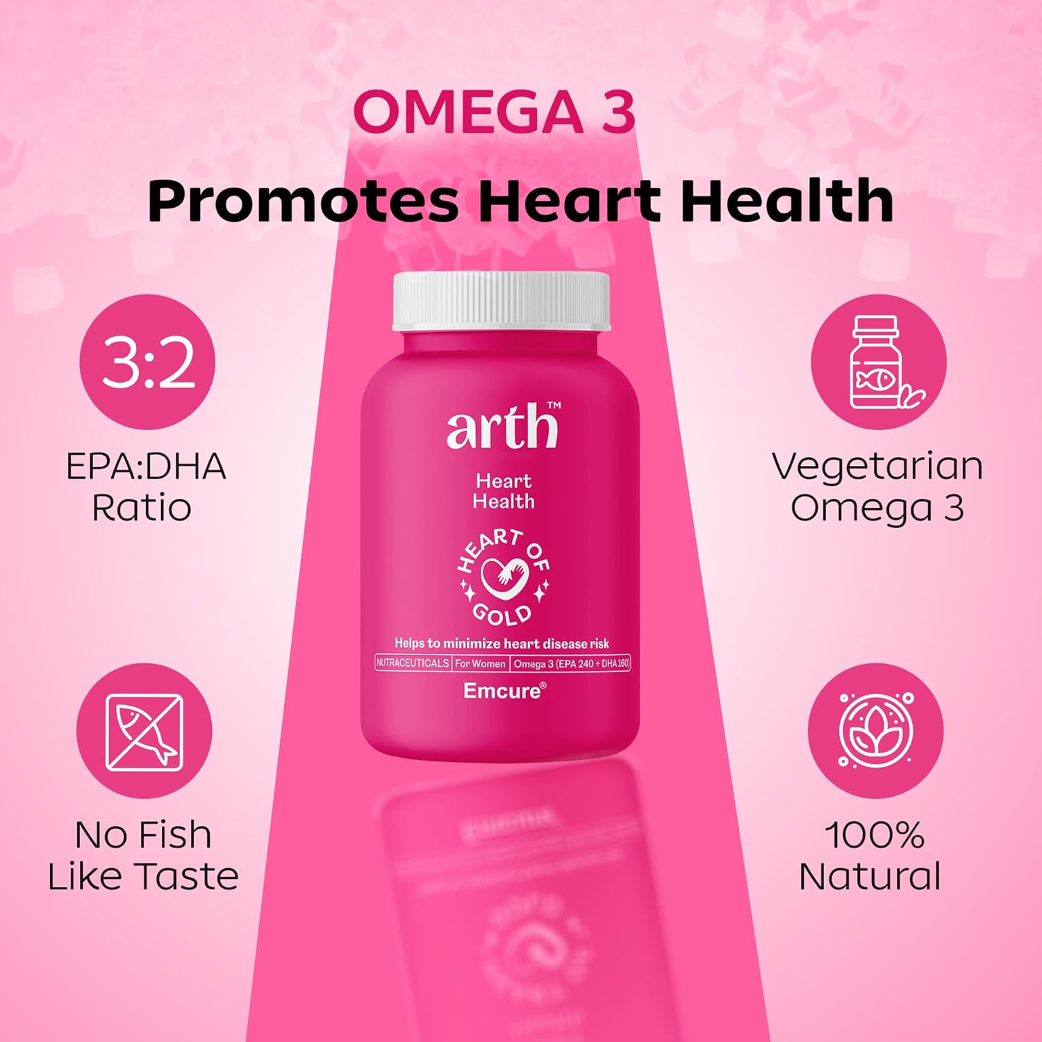Arth Heart Health | Promotes good heart health, Supports Cardiovascular health, Manages Cholestrol levels | Omega 3's anti-inflammatory properties help to maintain heart health, immunity, skin and bone health (30 Capsules)