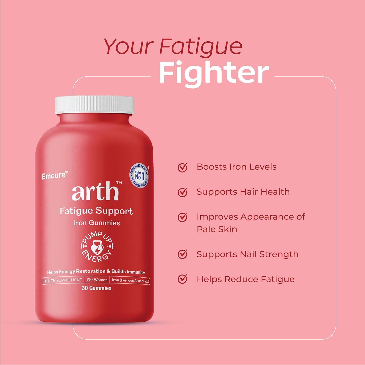 Arth Iron Supplement For Women | High Absorption Ferrous Ascorbate (67%) | With Folic Acid | Boosts Hemoglobin & Energy Levels | Reduces Fatigue & Lethargy | Emcure Pharma | 30 Iron Gummies