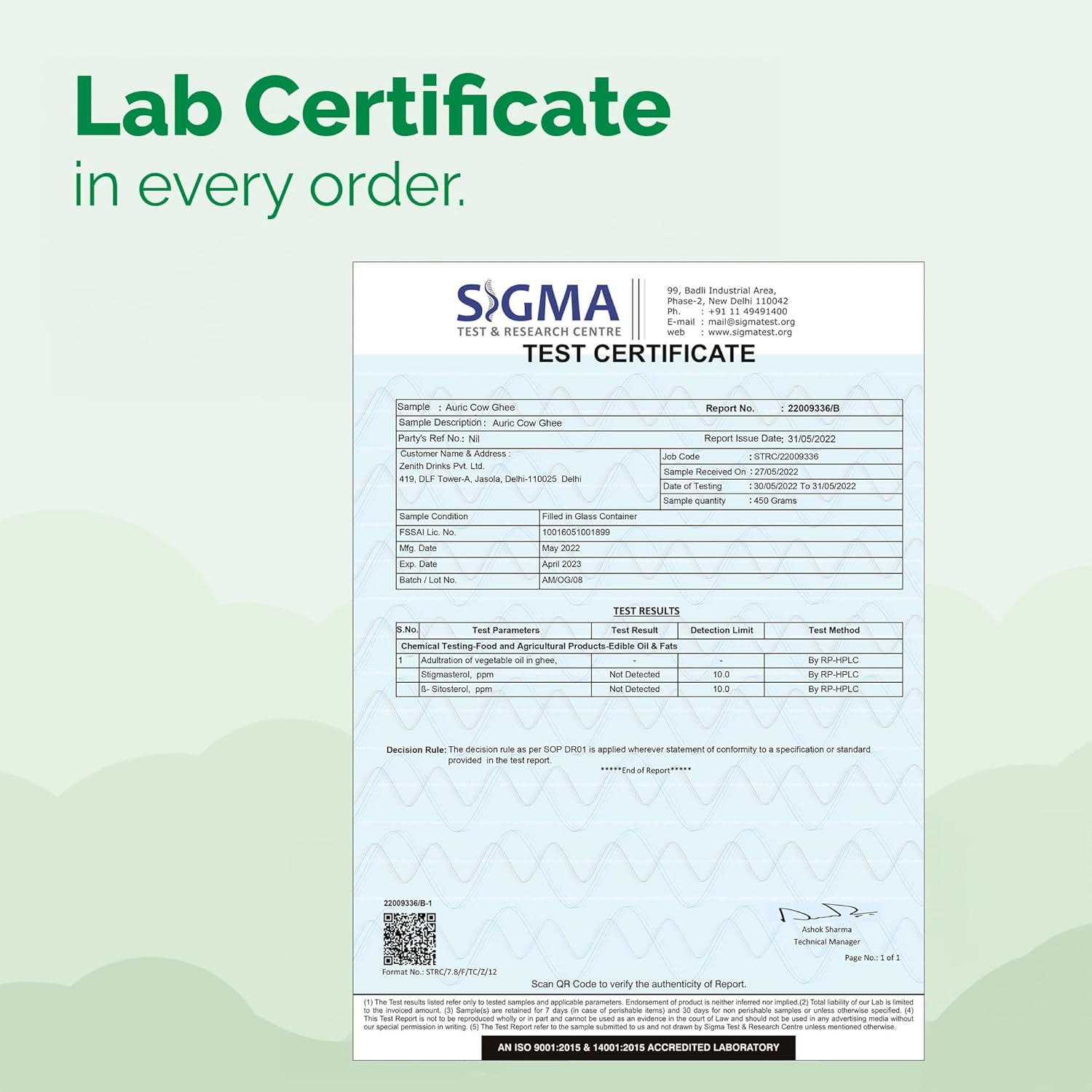 - LAB TESTED: Our Desi ghee is Lab Tested & certified by FSSAI, US FDA & International food safety standards. It is pure, preservative free and chemical free.