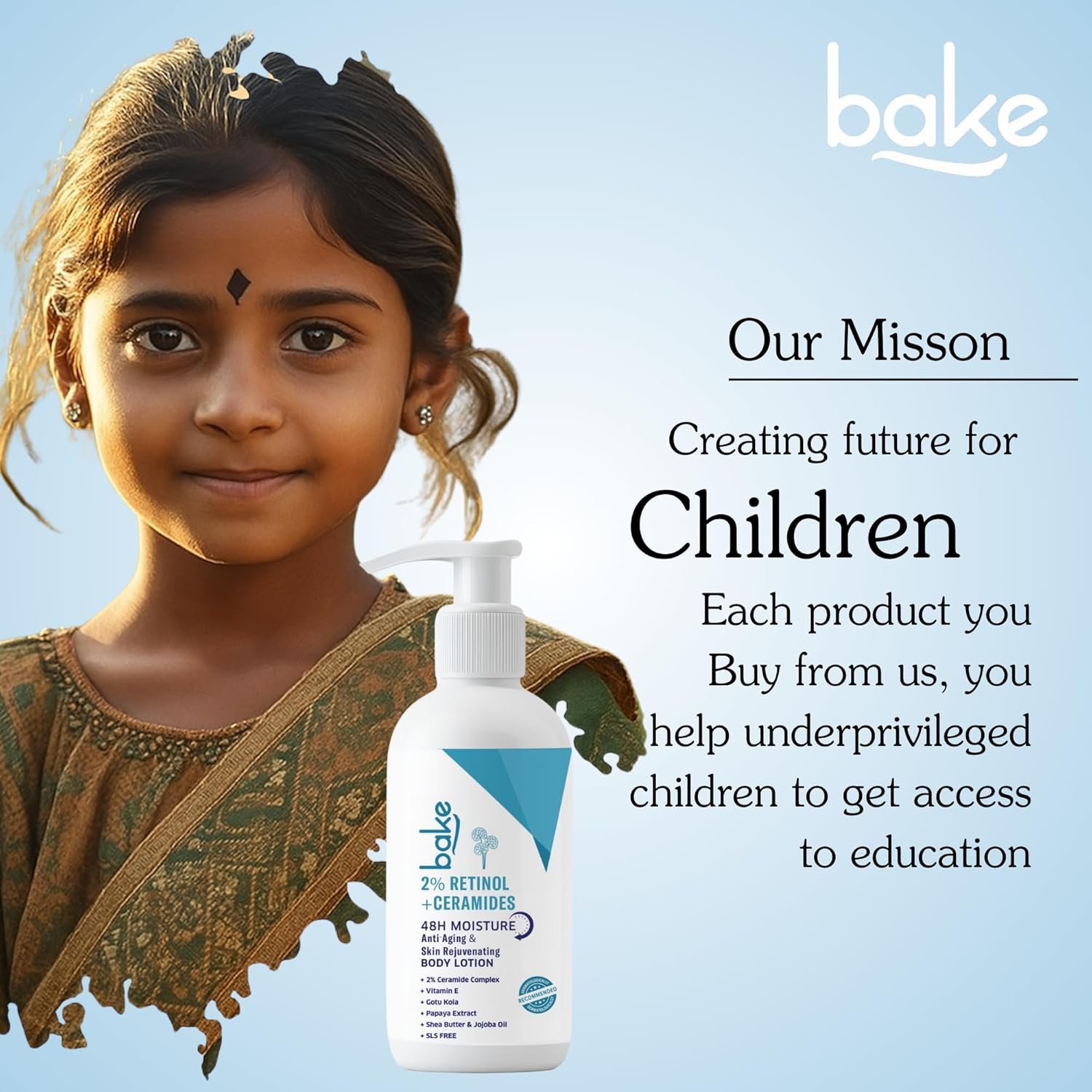 BAKE 2% Retinol + Ceramide Body Lotion for Dry, Aging Skin | Reduce Fine Lines & Wrinkles, Skin Tightening & Boosts Collagen Production | For Women & Men | 200ml
