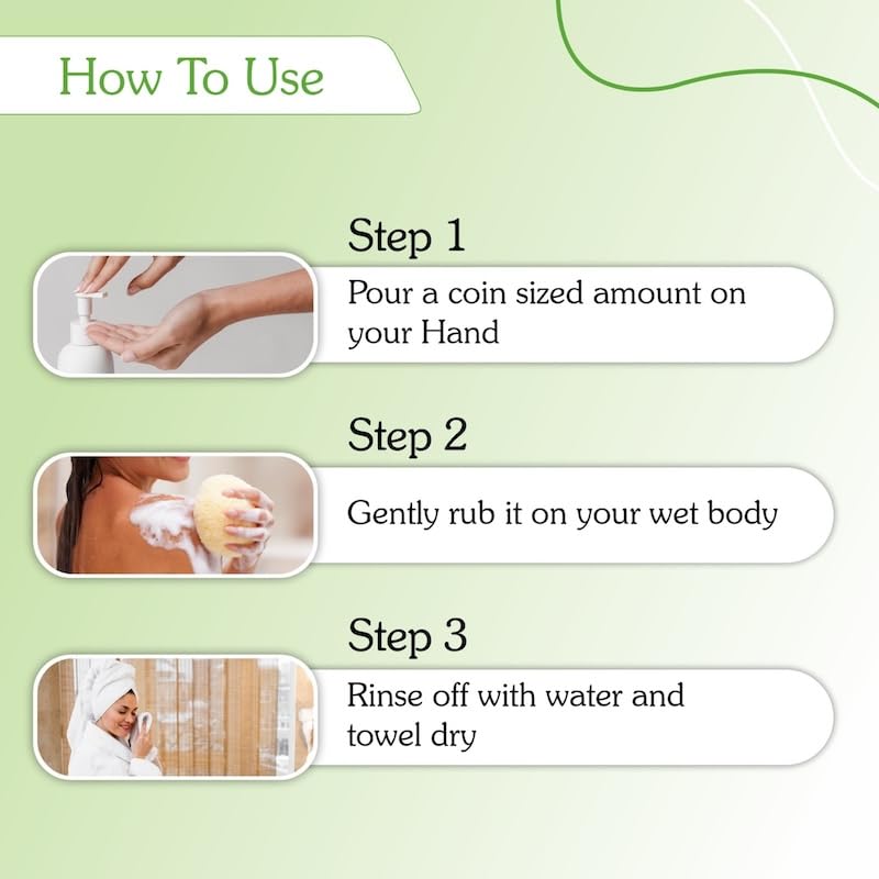 Pour a coin-sized amount onto your hand or loofah, gently rub it on your wet body, rinse off with water, and towel dry.