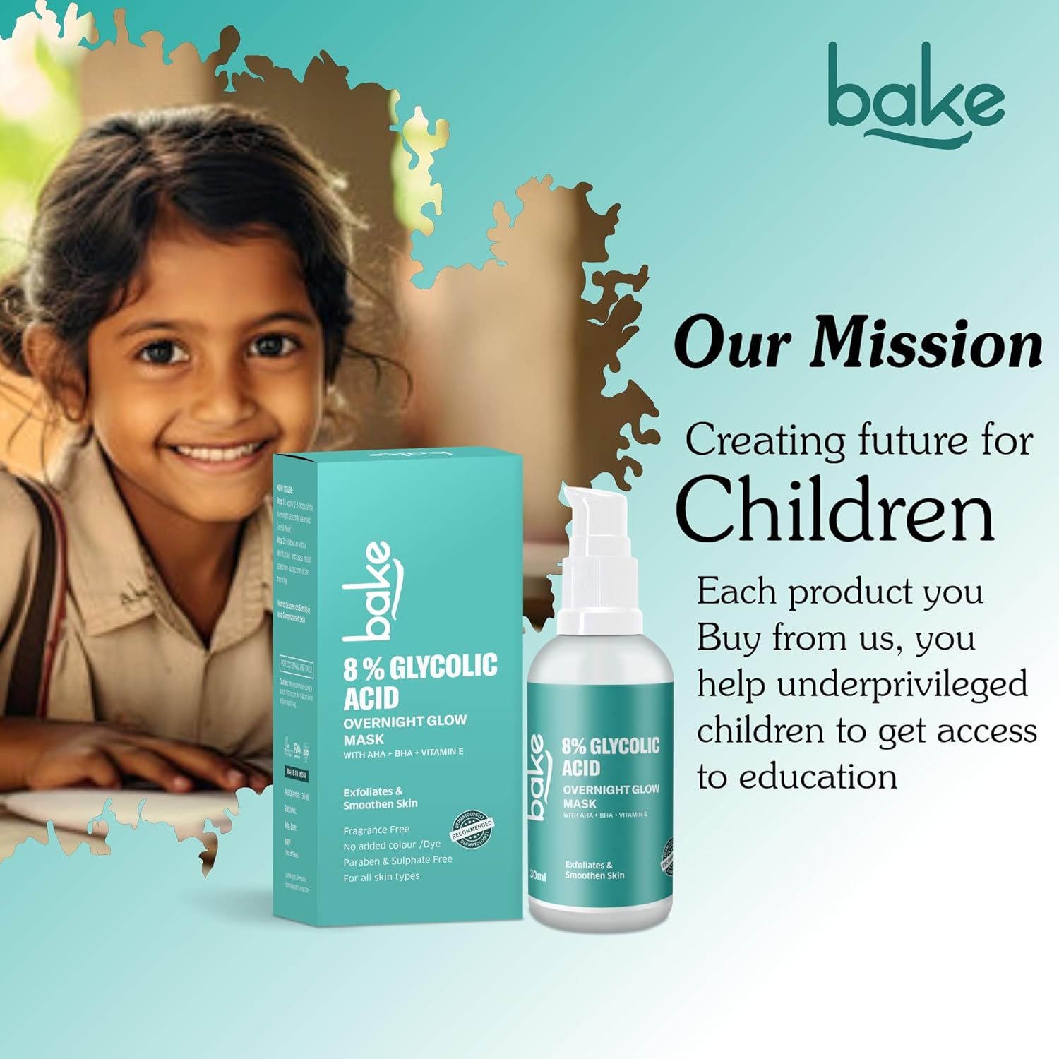 BAKE 8% Glycolic Acid Serum with AHA BHA & Lactic Acid | Improve Uneven Skin Tone, Pigmentation Solution, Unclogs Pores, Reduces Blackheads | Overnight Peeling Serum | For Women & Men | 30ml