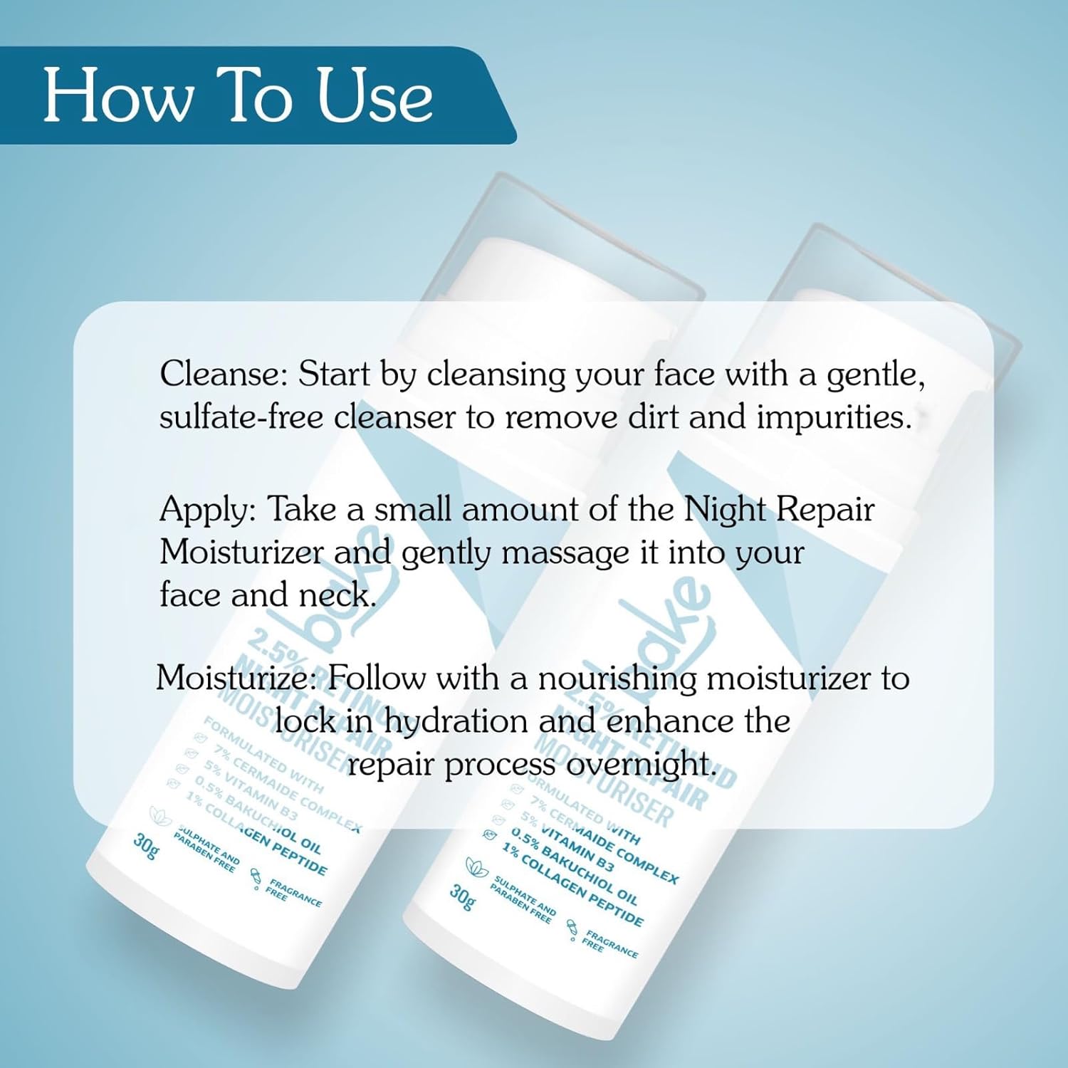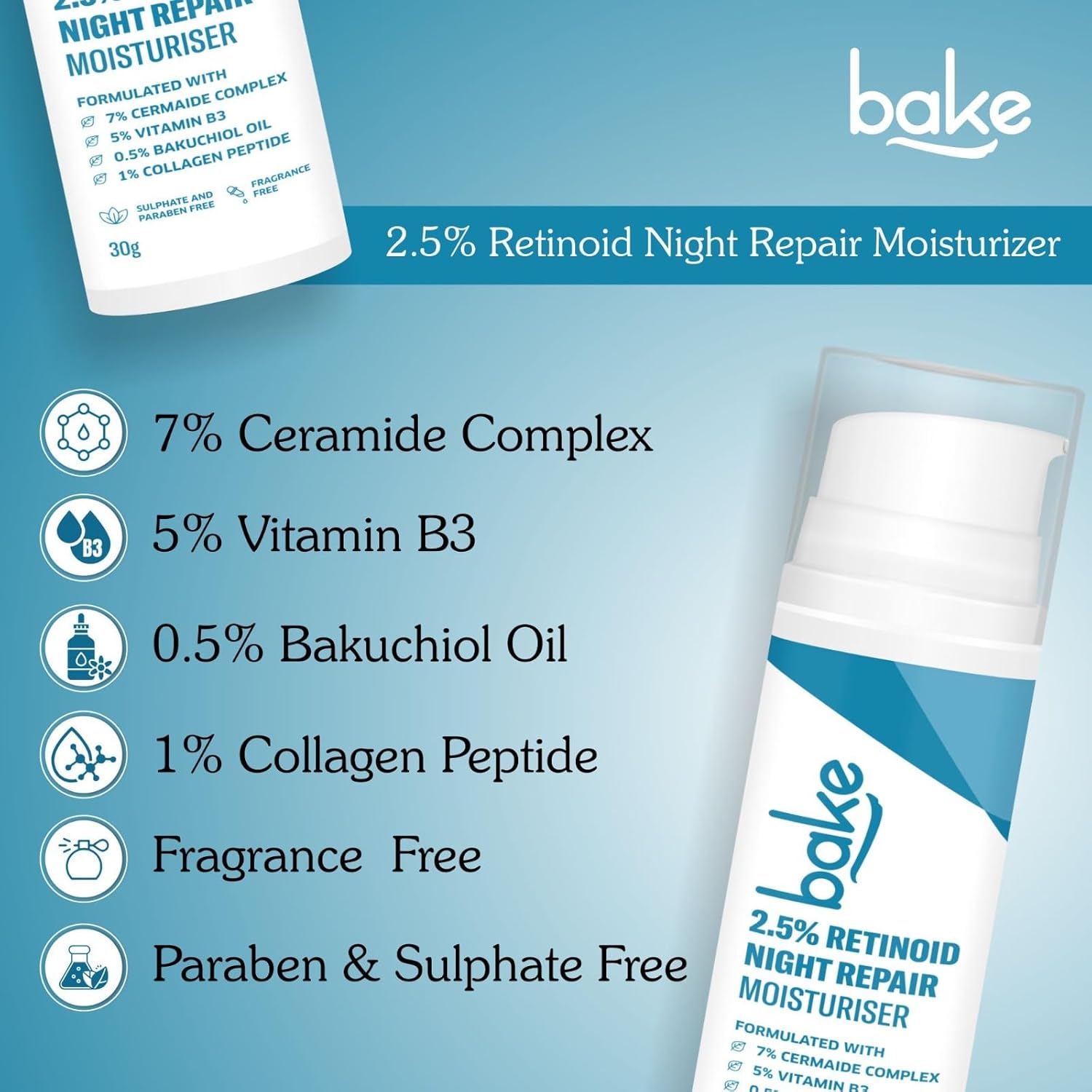 BAKE Retinol Night Cream with 2.5% Retinoid & Bakuchiol Oil for Anti Ageing, Fine Lines & Wrinkles | Retinol Night Repair Moisturizer | Lightweight, Non Sticky & Fragrance Free | All Skin Types | 30g
