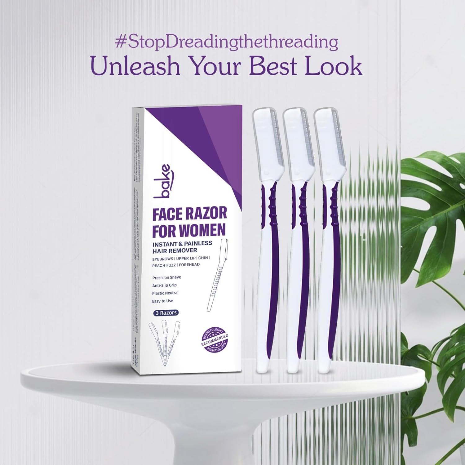 BAKE Reusable Face Razor for Women Facial Hair (3 Razors) | Instant Glow & Painless Hair Remover | For Eyebrows, Upper Lip, Chin, Peach Fuzz, Forehead, Unibrow, Sideburns | Precision Shave, Anti Slip Grip, Plastic Neutral