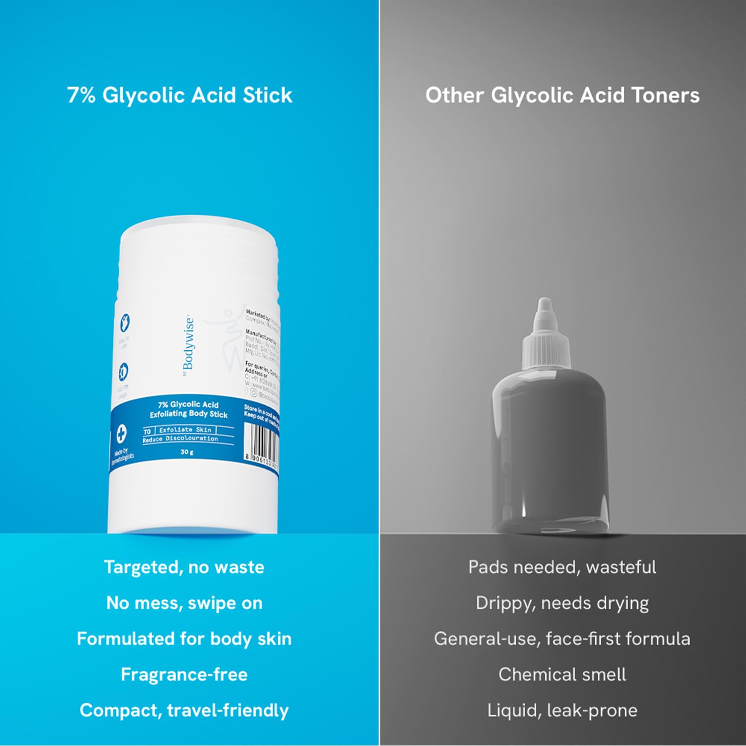 Be Bodywise 7% Glycolic Acid Exfoliating Body Stick | Gentle & Hydrating | Multifunctional | Exfoliates Skin, Smoothens Bumps & Reduces Ingrown Hair | With 0.5% Salicylic Acid & Shea Butter | 30g