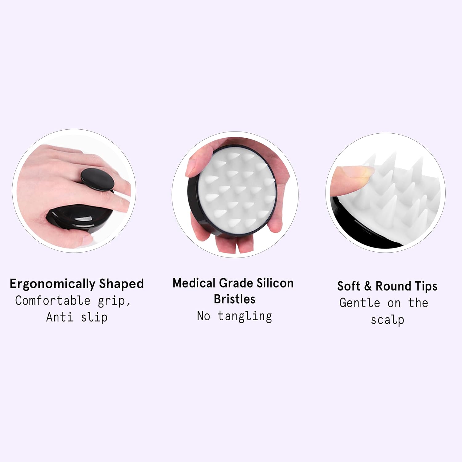 - EXFOLIATES SCALP - Super soft Medical Grade Silicon Bristles that bend as you massager on your wet & dry scalp. It gently massages scalp, improves blood circulation & exfoliates follicles promoting faster hair growth, With its ergonomic design it cleans your scalp & hair making giving a cleaner healthier scalp.