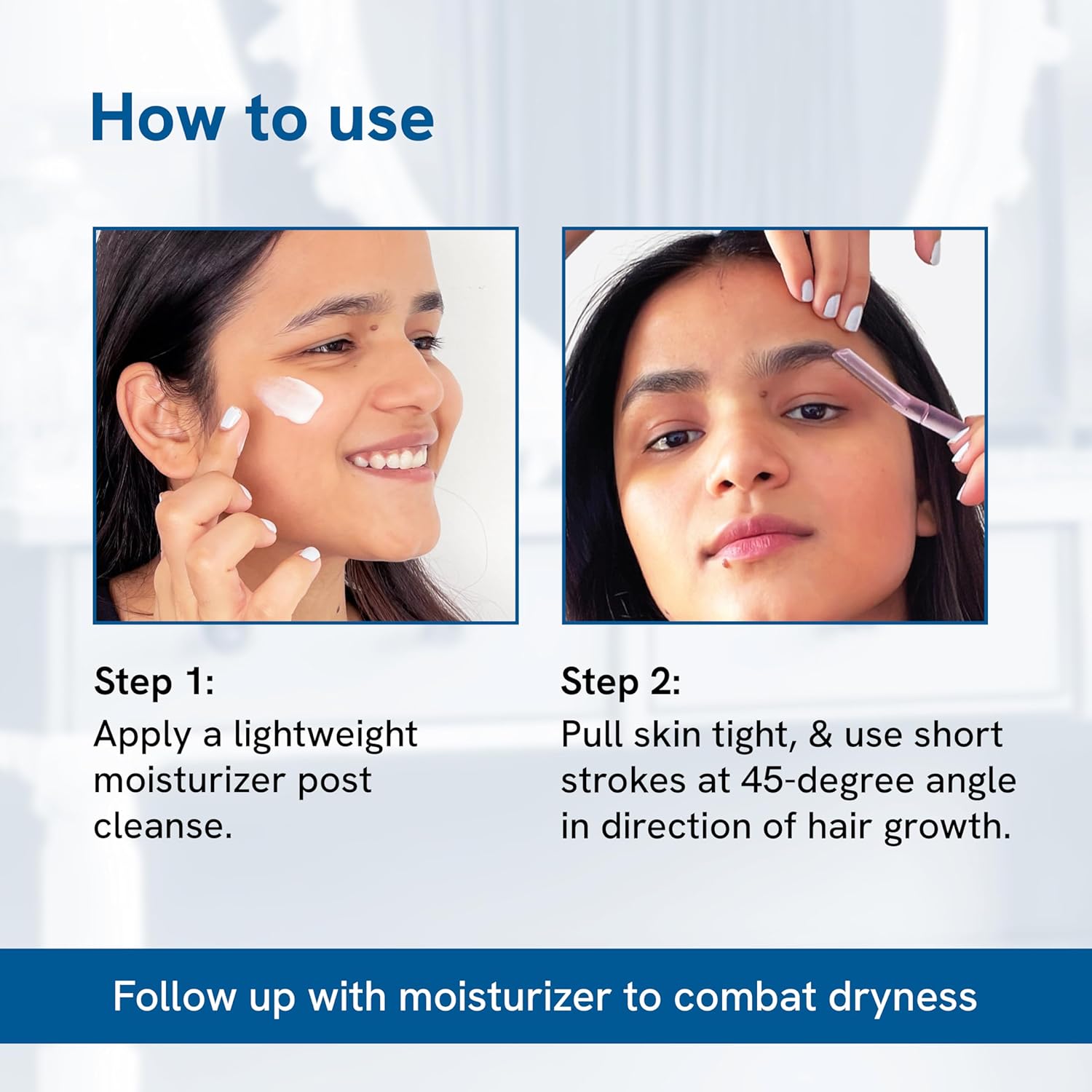 - Precise Hair Removal & Exfoliation – Crafted with high-quality stainless steel blades, our face razor gently removes peach fuzz and dead skin, revealing a brighter, smoother complexion while enhancing skincare absorption.