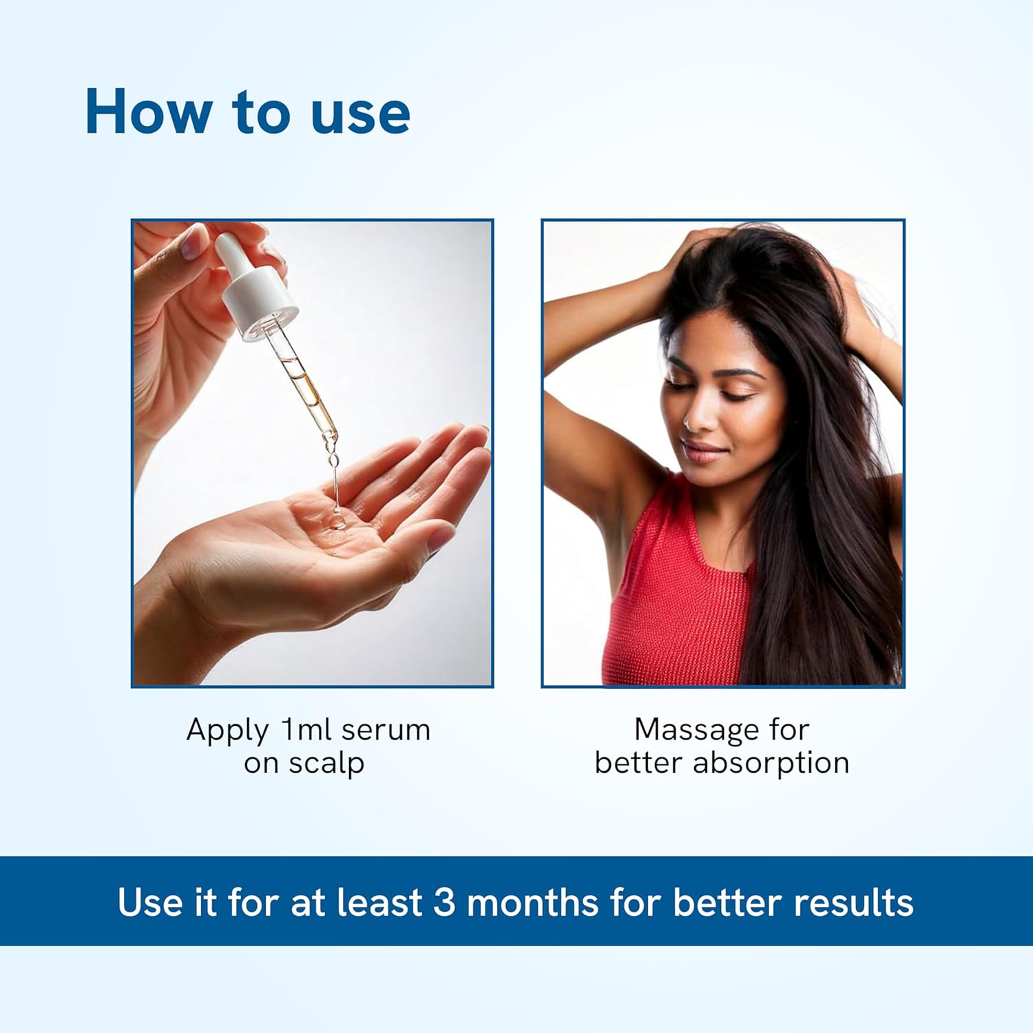 Apply 1 ml serum on scalp,Massage for better absorption,Use it for at least 3 months for better results.