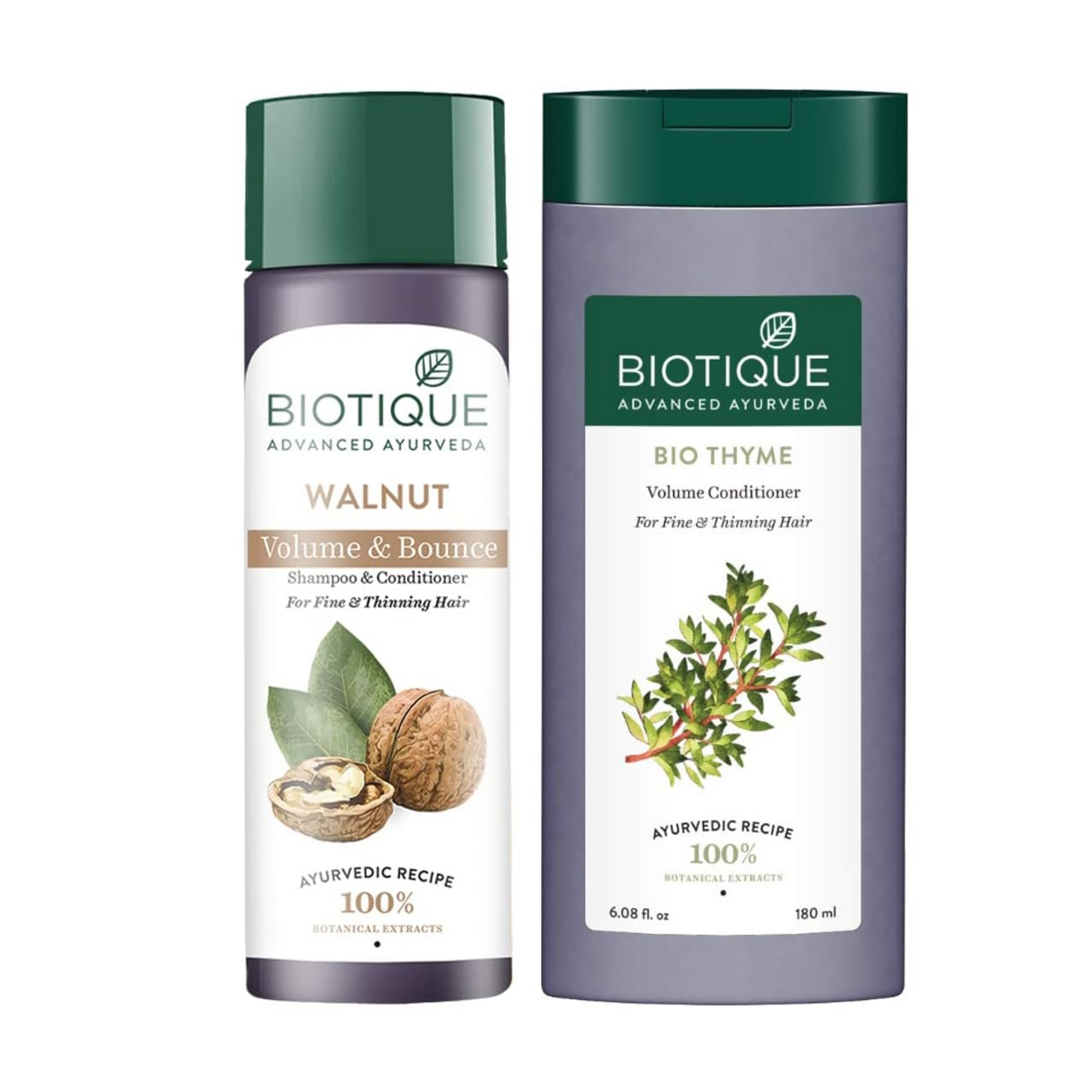 Biotique Bio Walnut Bark Fresh Lift Body Building Shampoo For Fine & Thinning Hair, 190Ml & Biotique Bio Thyme Volume Conditioner for Fine and Thinning Hair, 180ml