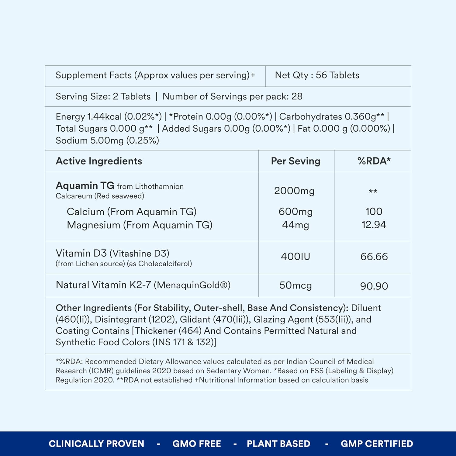Bone Strength | Plant-based Calcium with Vitamin D3, K2-7 & Magnesium | Supports bone health| GMP Certified | 56 Veg Capsules