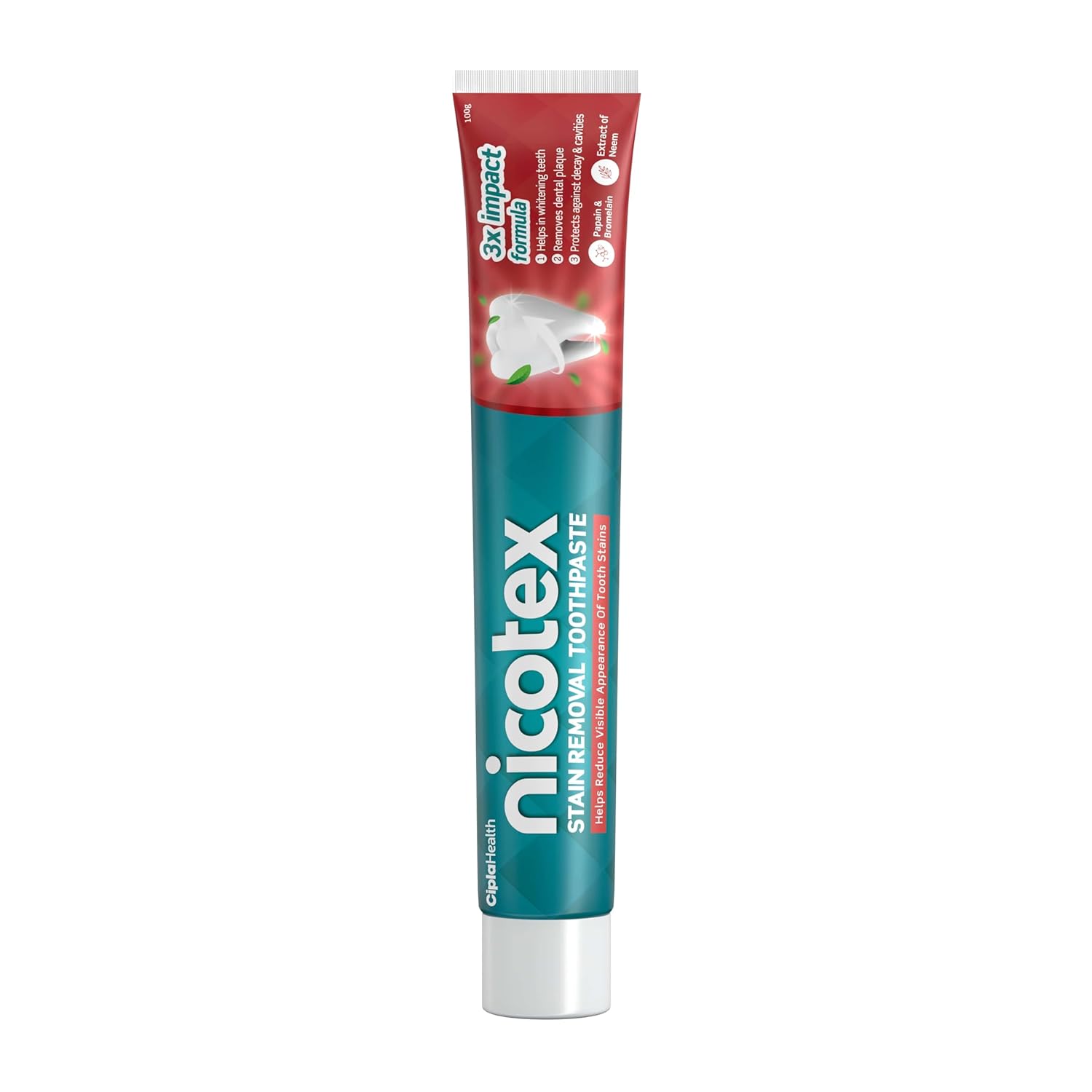 Cipla Nicotex Stain Removal Toothpaste | Teeth Whitening, Plaque Removal, Protection Against Decay And Cavities | Papain, Bromelain, Neem Extract, Meswak Extract | With Fluoride | Sls Free | 100G