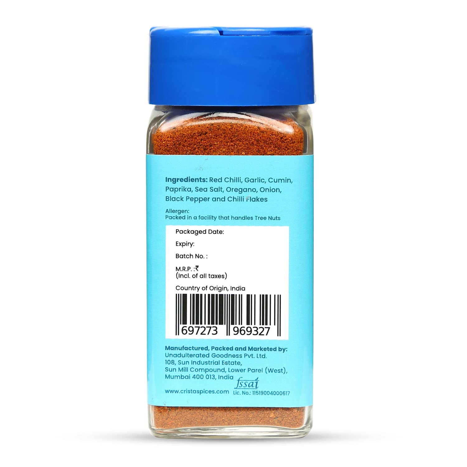 Red Chilli, Garlic, Cumin, Paprika, Sea Salt, Oregano, Onion, Black Pepper and Chilli Flakes