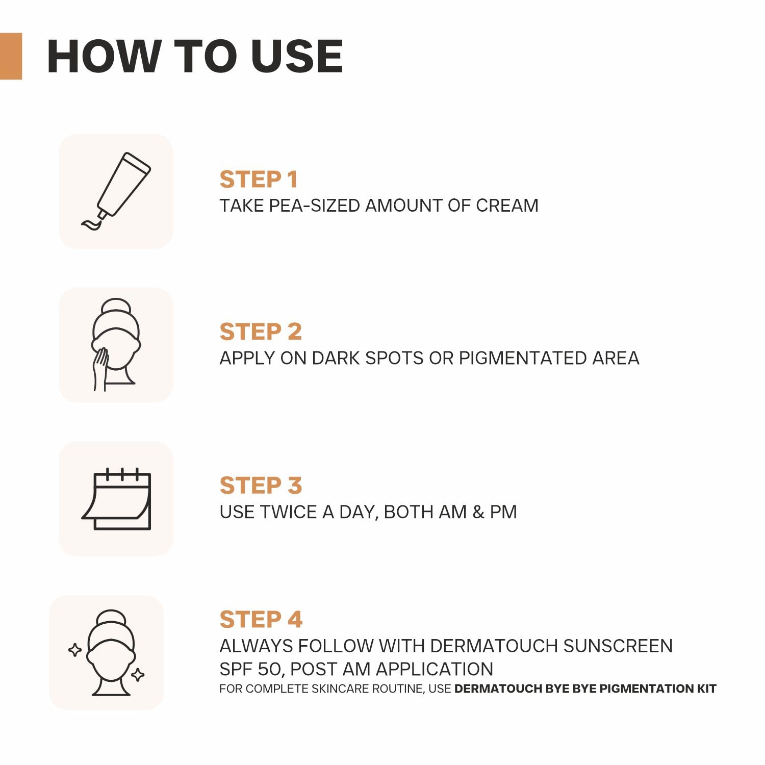 DERMATOUCH Bye Bye Pigmentation Cream || Pigmentation Cream for Women/Men with Niacinamide, B-White, Lime Pearl, OA Hidroxitirosol LD & Tyrostat - 20G