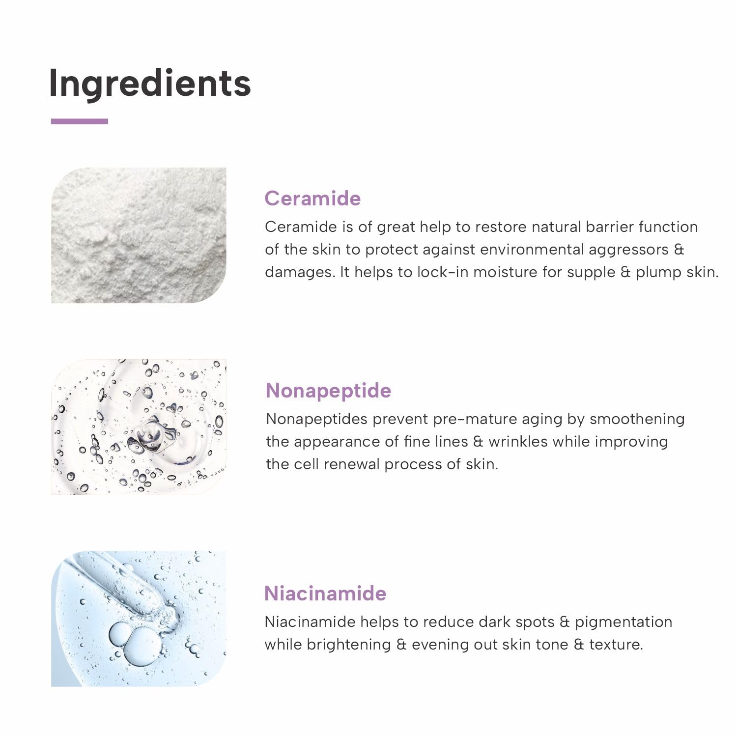 Active Ingredients | Ceramide 2% Nonapeptide 1% Niacinamide 5% |