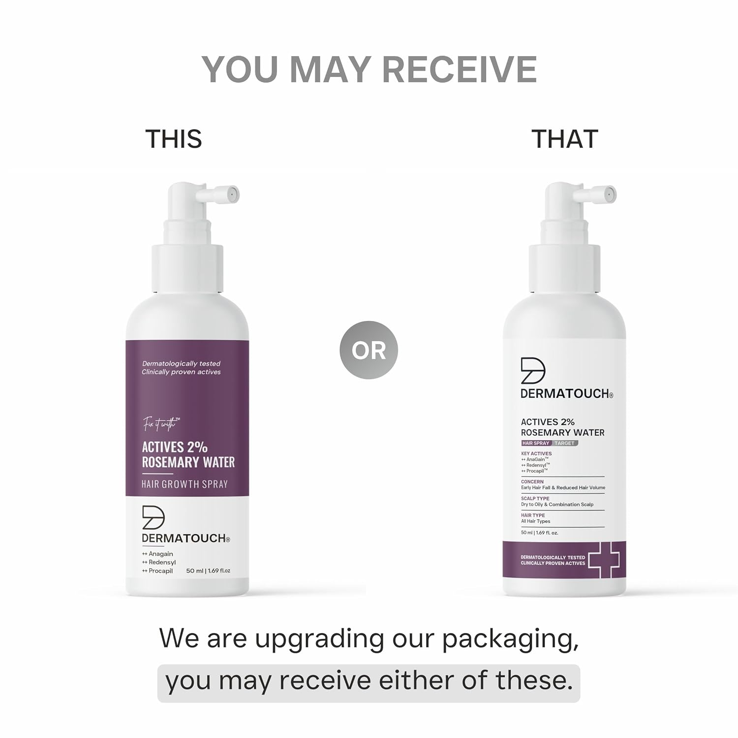 DERMATOUCH Rosemary Water Spray For Hair Growth (50 ml) | Advance 2% Actives Rosemary, Redensyl, Anagain + Procapil Spray Mist for Fall Control, Stimulates Hair Growth, Adds Shine, Strengthens