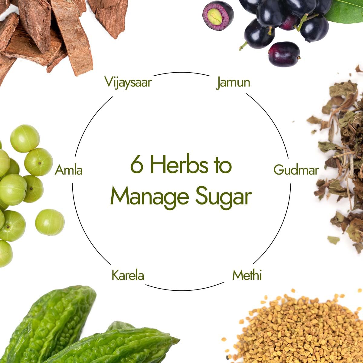 - CONTROL BLOOD SUGAR LEVELS: Herbs such as Karela, Amla, Jamun, Tulsi, Guduchi, Methi and Belpatra, optimize the production of hormones by breaking down glucose from foods. Regular consumption of this juice can help in maintaining optimal sugar levels within 3 months of consumption.