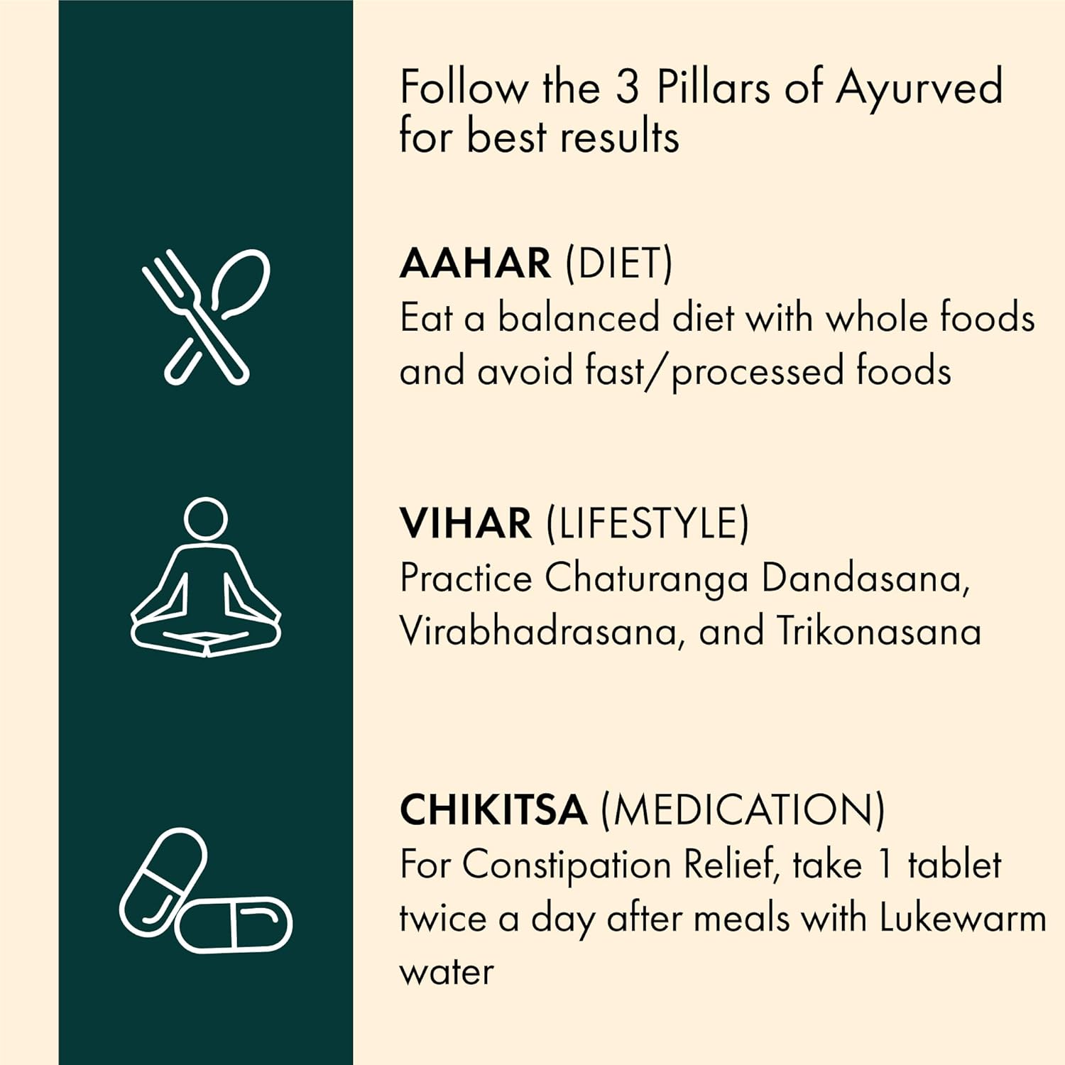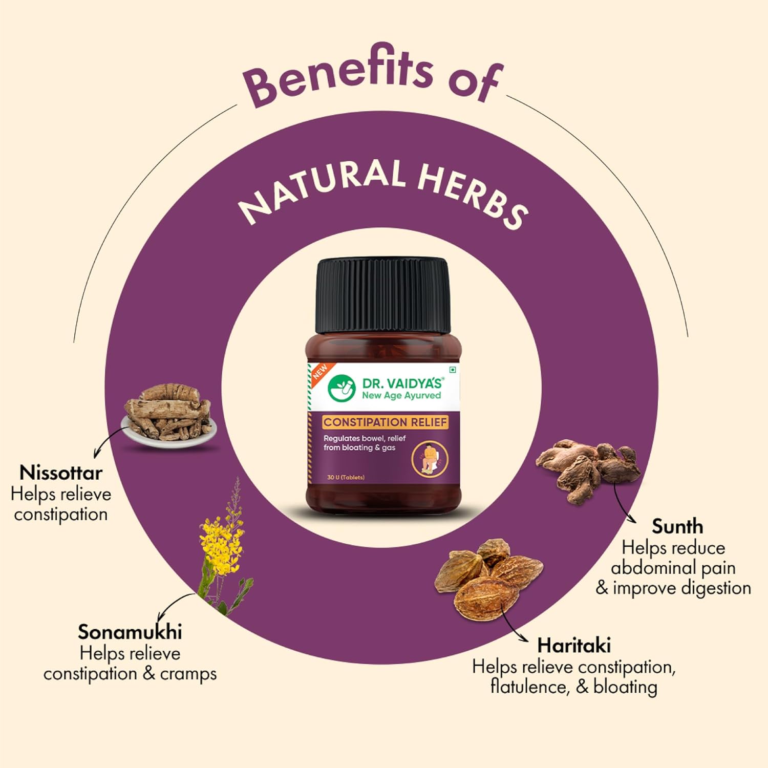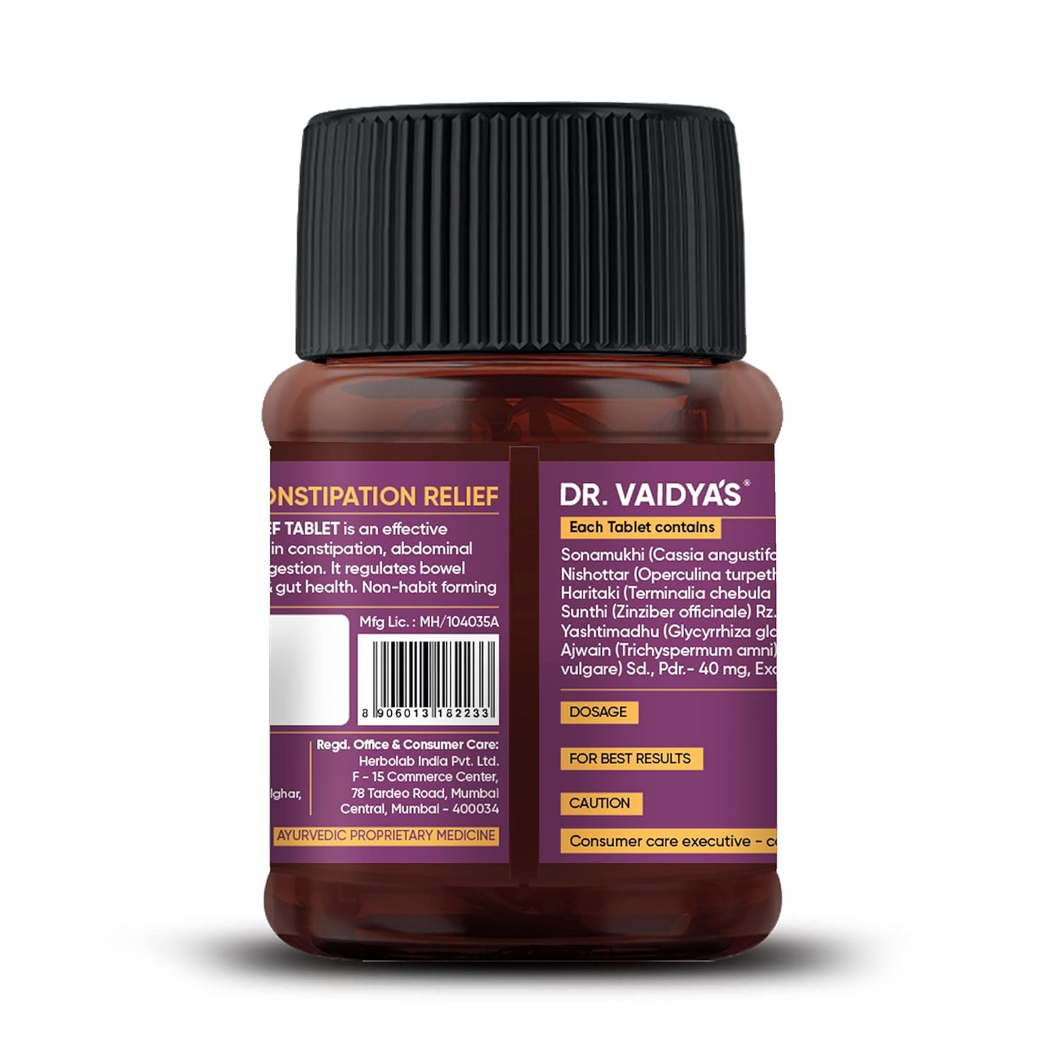 Dr. Vaidya's Constipation Relief Tablets | Improves Digestion & Regulates Bowel Movement | Sonamukhi, Haritaki & Sunth | (30 Tablets)