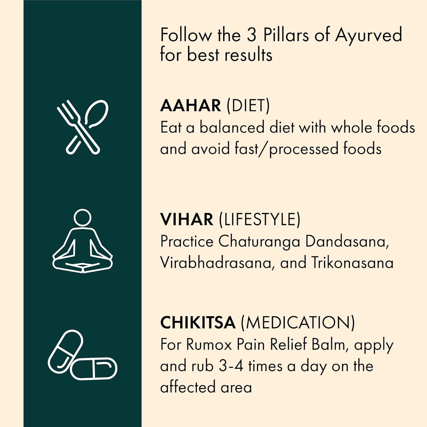 - QUICK AND LONG-LASTING RELIEF FROM JOINT PAIN: Rumox Pain Relief Balm contains a blend of 9 Ayurvedic ingredients known to provide quick and long-lasting relief from joint pain.