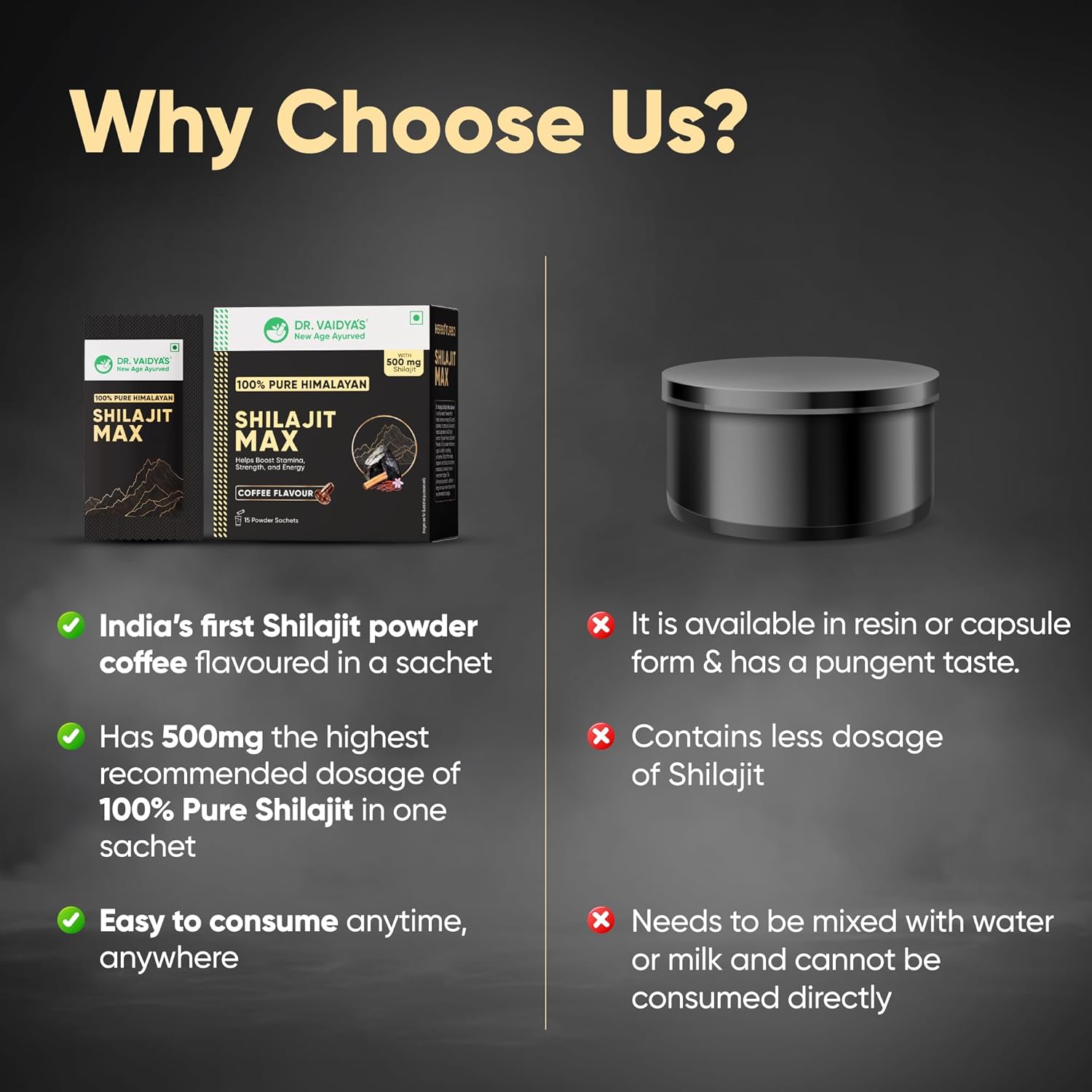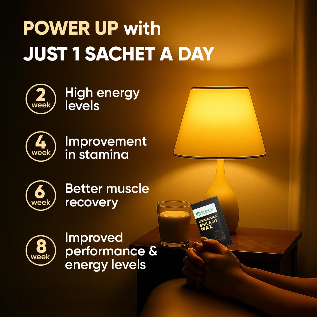 - Provides Stamina On The Go - Each sachet of Dr Vaidya’s Shilajit Max provides 500 mg of 100% Pure Himalayan Shilajit that can be consumed directly, anytime, anywhere.