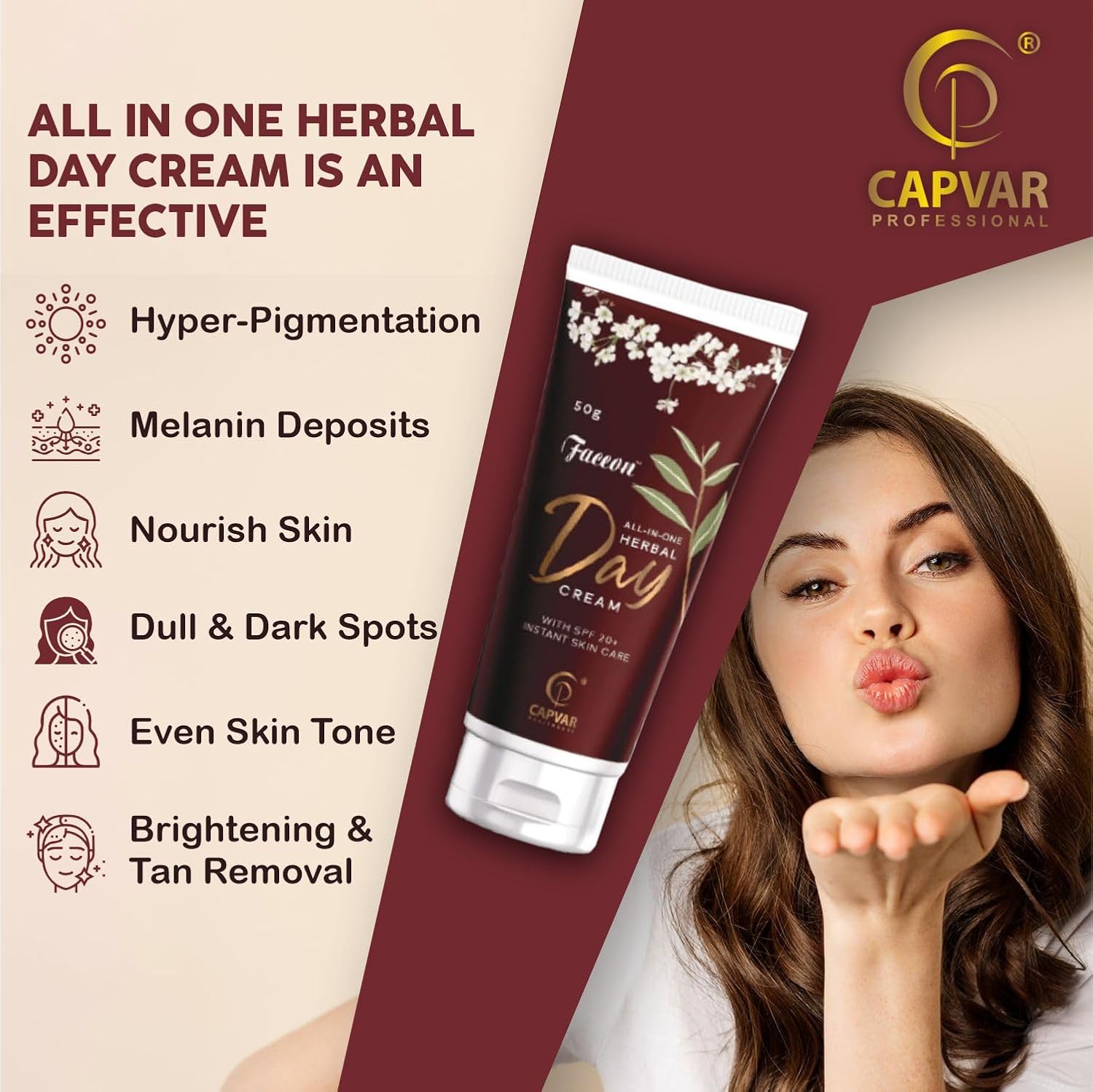 Faceon All In One Herbal Day Cream 50gm With SPF 20+ Instant Skin Care | Paraben and Sulphate Free | Normal, Oily, Dry and Combination Skin l