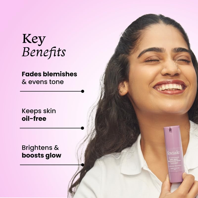 Foxtale 5% Niacinamide Face Serum | Fades Blemishes & Acne Marks | Reduce Dark Spots | Controls Oil and Brightens Skin | Lightweight & Non-sticky | All Skin Types | Men & Women - 30ml