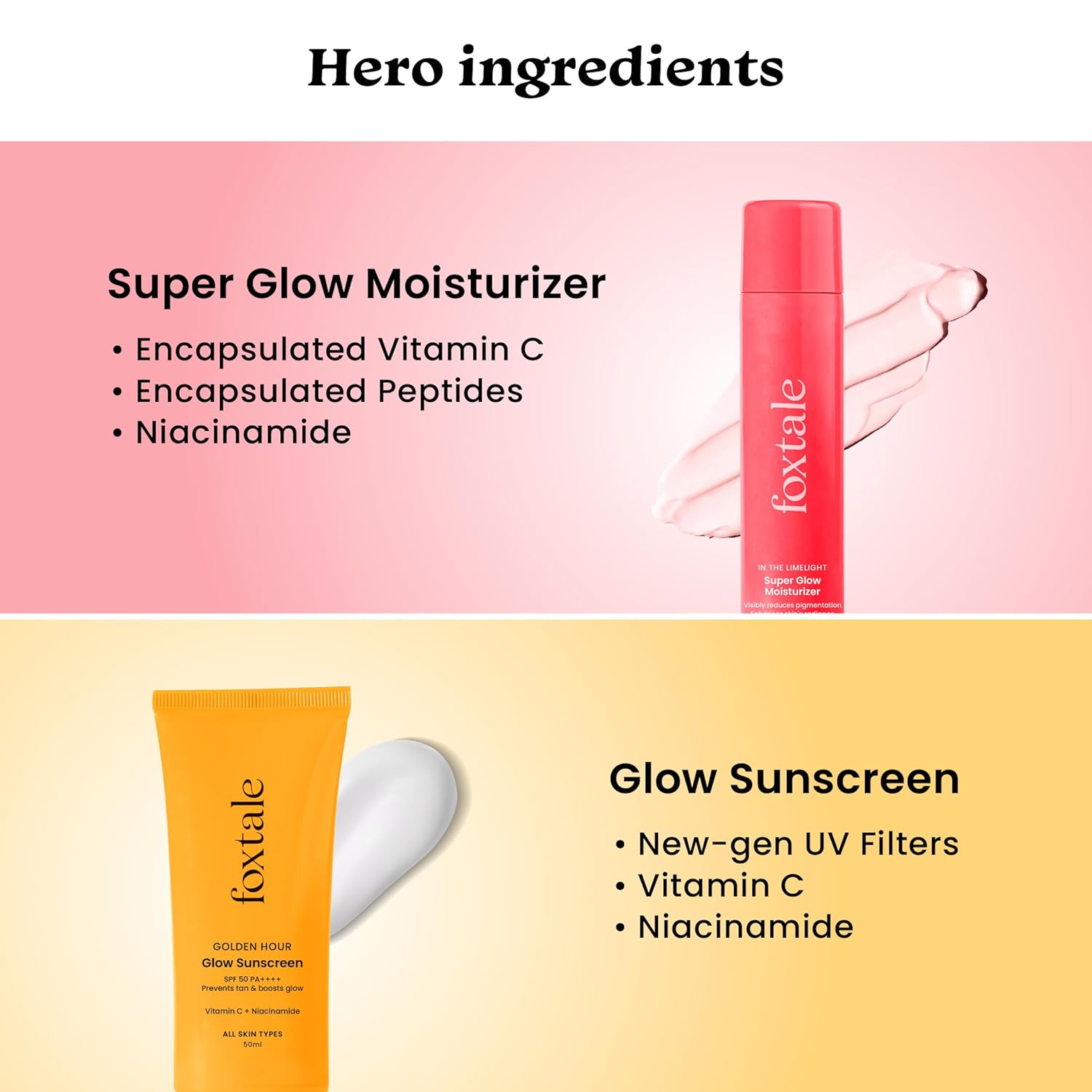 Foxtale Golden Glow Duo | SPF 50 Glow Sunscreen & Super Glow Moisturizer | Vitamin C, Niacinamide & Peptides | Brightens, Hydrates, Prevents Tan & Pigmentation | Lightweight, Non-Sticky, No White Cast | All Skin Types | Summer Essentials