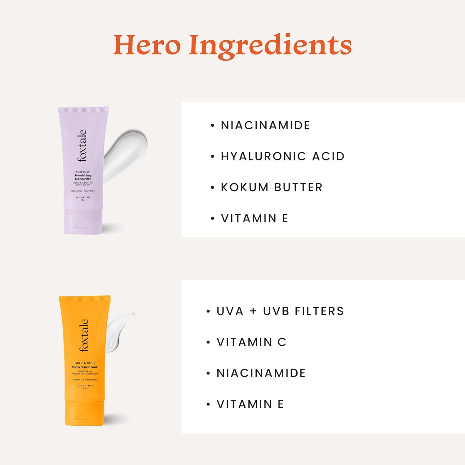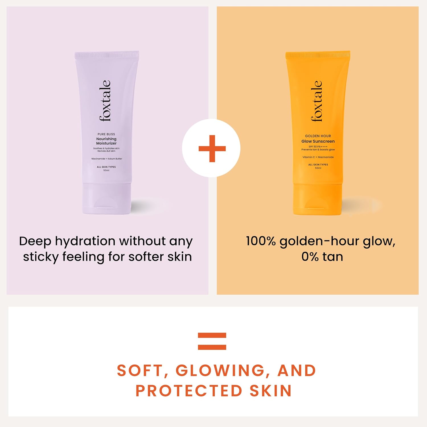 Foxtale Healthy Glow Combo for Soft and Hydrated Skin and a Healthy Golden Glow with Nourishing Moisturizer - 50 ml and Glow Sunscreen - 50 ml, For All Skin Types, Men & Women