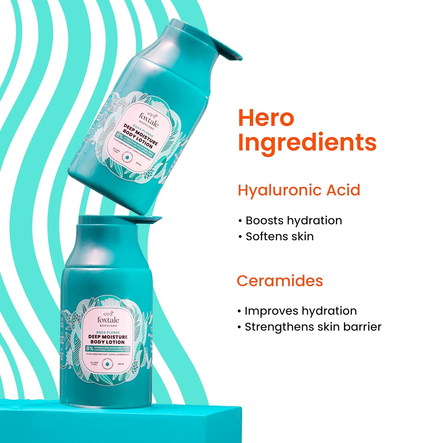 Foxtale Hydrating Body Lotion with Hyaluronic Acid & Ceramides | 72-hour Hydration | Lightweight & Non-Sticky | Long Lasting Musk Fragrance | Body Lotion for Men & Women | All Skin Type | 200 ml