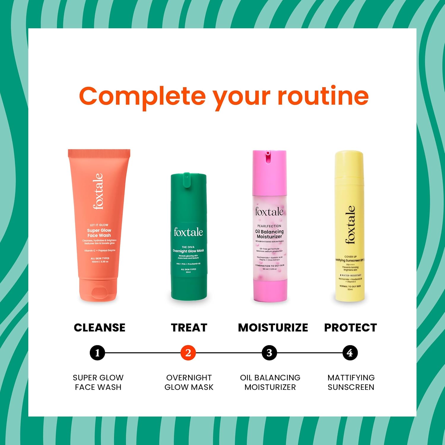 Foxtale Overnight Glow Mask | 4% Glycolic Acid | 3% Lactic Acid |Reduces Blackheads, Whiteheads | 30 Second Salon like Brightening Facial for Glowing Skin | Men & Women - 30ml