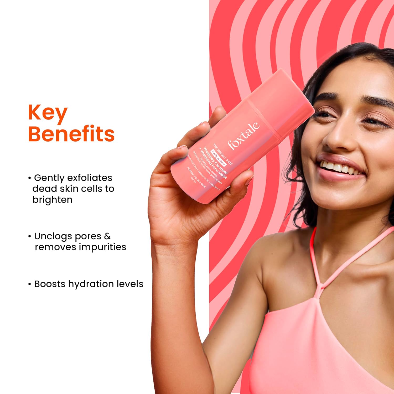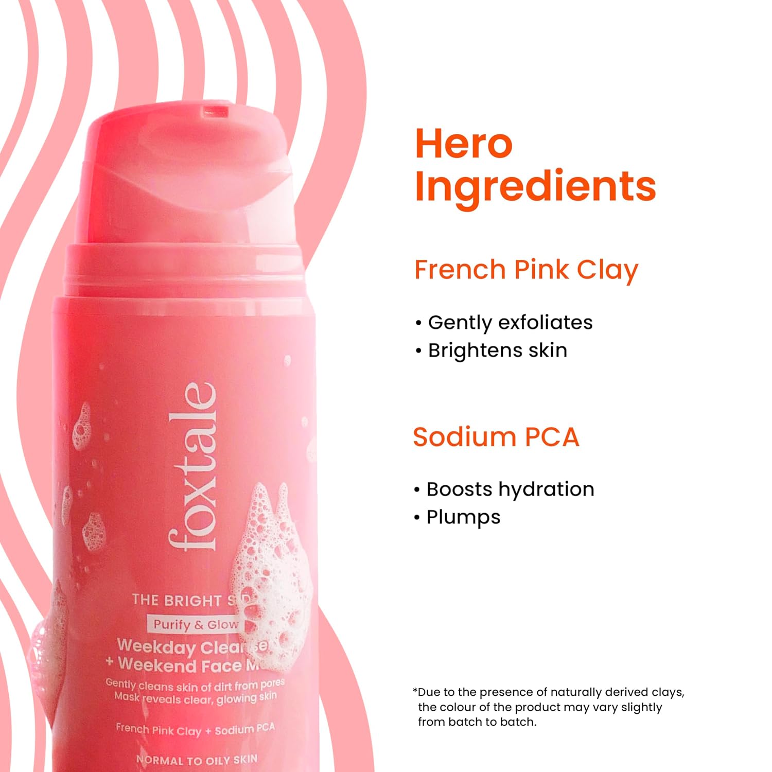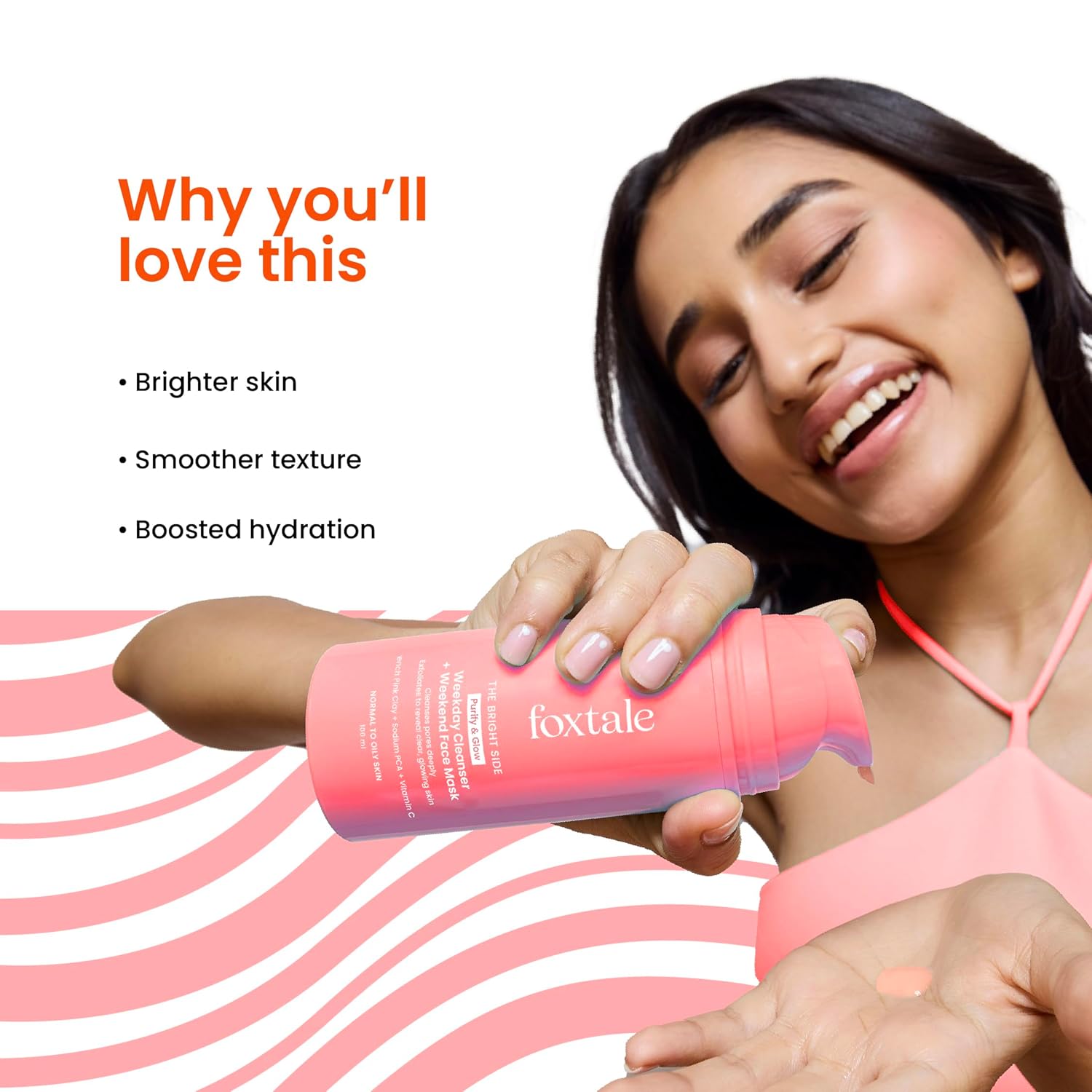 Foxtale Purify & Glow Cleanser + Clay Mask - Deep Cleanses Pores, Exfoliating Glow Facial, Instantly Gives Bright Skin, For Normal, Oily and Combination Skin, Men & Women - 100ml