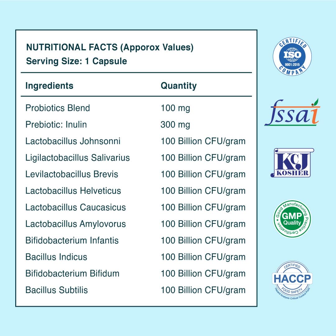 - Supports Immunity : A healthy gut means a stronger immune system.Our multi-strain probiotic blend helps support your body’s natural defenses by improving gut balance, so you feel stronger and active. Our diverse probiotic strains help strengthen the gut barrier, which supports immune function, keeping you feeling active, balanced, and at your best every day.
