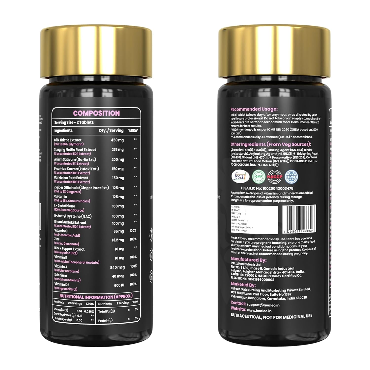 Healeo Liver Forte 2500mg, 17-in-1 Milk Thistle Liver Detox Supplement with NAC, Glutathione, Turmeric, Dandelion - Fatty Liver Cleanse, Care & Support - Lab Tested - 60 Veg Tablets