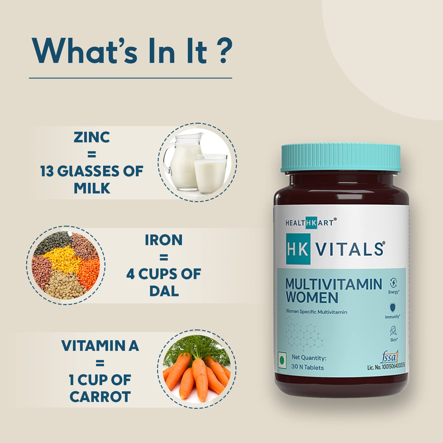 - IMMUNITY BOOSTER: hk vitals Multivitamin for Women (from the house of HealthKart) contains multivitamins and minerals like Zinc, Vitamin C, Vitamin D, Vitamin E, Vitamin B, etc. to support the immune system