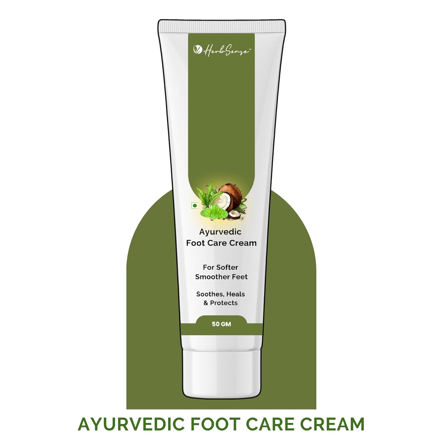 HerbSense Ayurvedic Foot Care Cream, For Dry & Cracked Heels, Enriched Shea Butter, Ginger, Lemon Coconut Oil & Herbs, 50g, Soothes, Heals & Protects