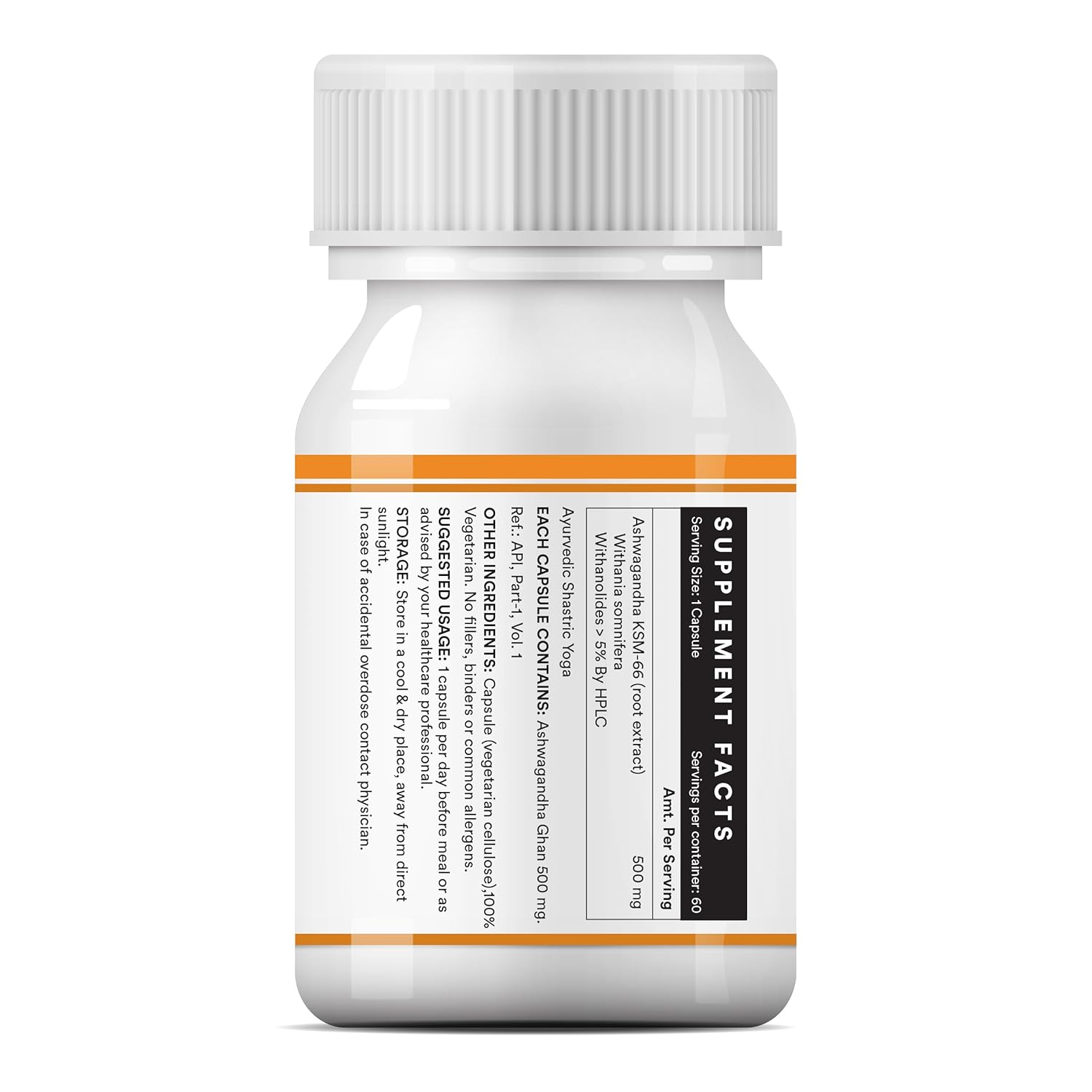 INLIFE Ashwagandha KSM-66 Capsules: These capsules feature a high-quality Ashwagandha root extract, standardized to > 5% Withanolides, known for its potency and purity. Vegetarian Capsules: Encapsulated in HPMC (Hydroxypropyl Methylcellulose), these capsules are suitable for vegetarians and free from artificial additives. Convenient Dosage: Each bottle contains 60 vegetable capsules. The suggested dosage is one capsule daily before a meal, or as recommended by your healthcare professional. Key Ingredients: Includes Ashwagandha Root Extract (KSM-66), known for its high potency, and HPMC, used for creating vegetarian capsules. Manufactured to High Standards: Produced in an FSSAI, Ayush (Herbal/Ayurvedic), GMP, ISO 22000:2005 certified facility under stringent GMP guidelines to ensure quality and safety.
