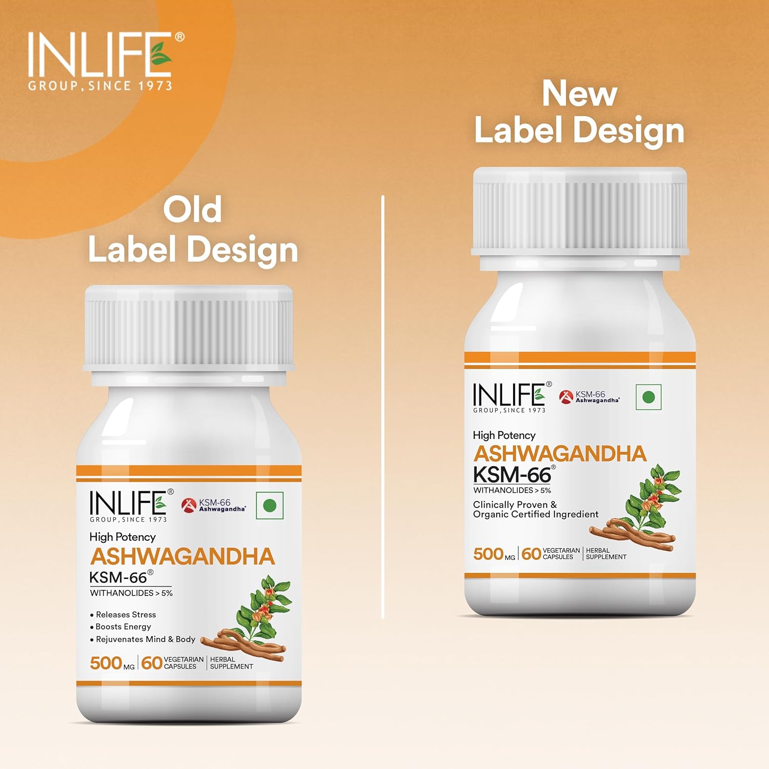INLIFE Ashwagandha KSM-66 (500 mg) | 60 Capsules | Extra Strength Natural Formulation | Supports Strength, Energy | Withania Somnifera Extract (Pack of 1, 60, count)