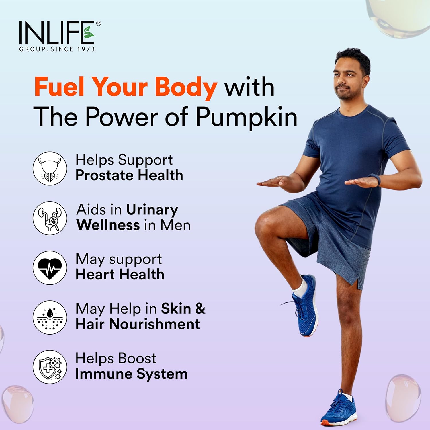 INLIFE Pumpkin Seed Oil Capsules | Extra Virgin Cold Pressed Pure Oil | Plant-Based Phytosterols | Prostate Health Support & Immunity | 60 Vegetarian Capsules