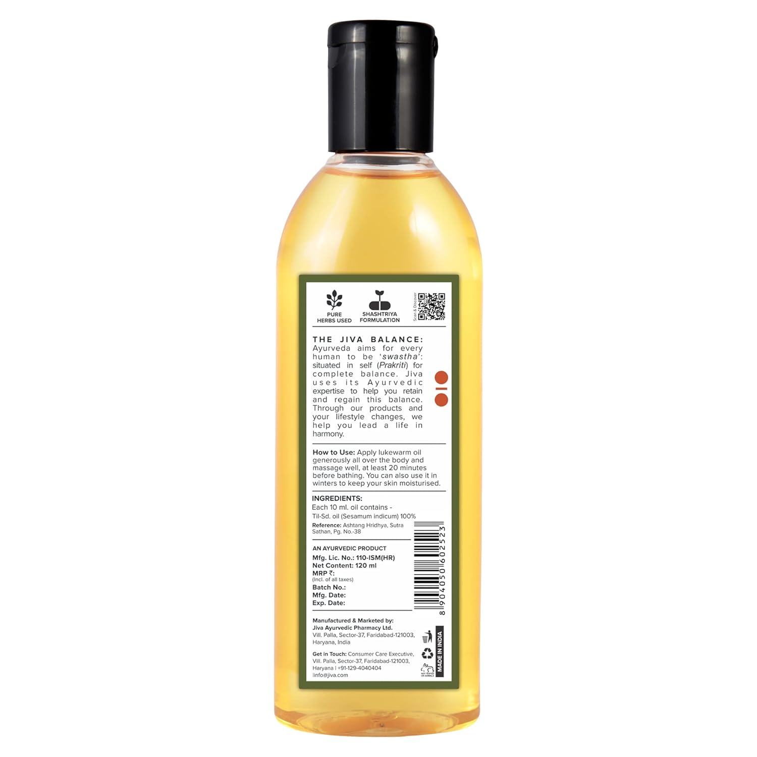 Jiva Medicated Til Oil 120 ml | Ayurvedic Oil Made of Pure Herbs | Relieves Joint And Muscle Pain, Stiffness And Tremors | Pacifies Vata Dosha
