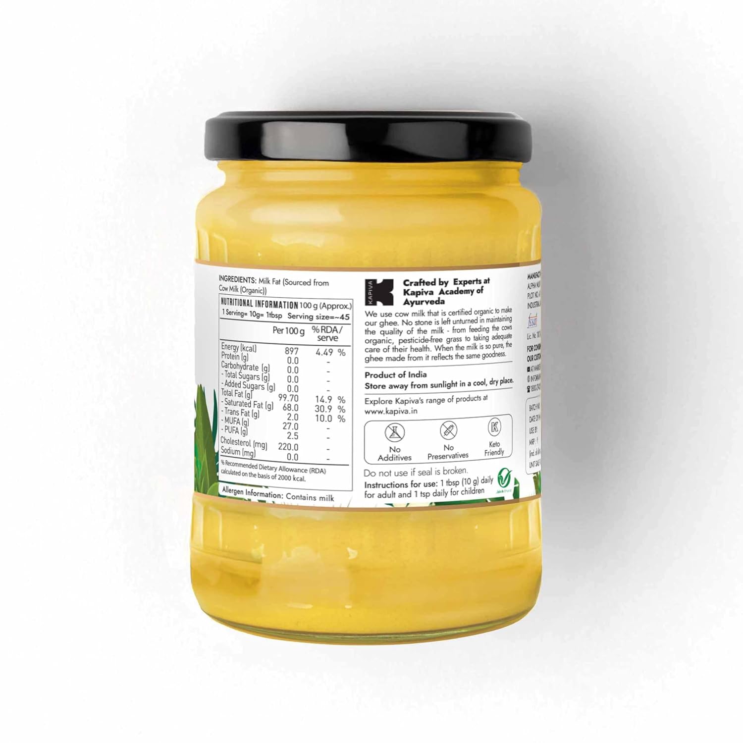 Kapiva 100% Organic Ghee - Good Fats For Healthy Heart - Keto Diet Friendly, 500 Ml