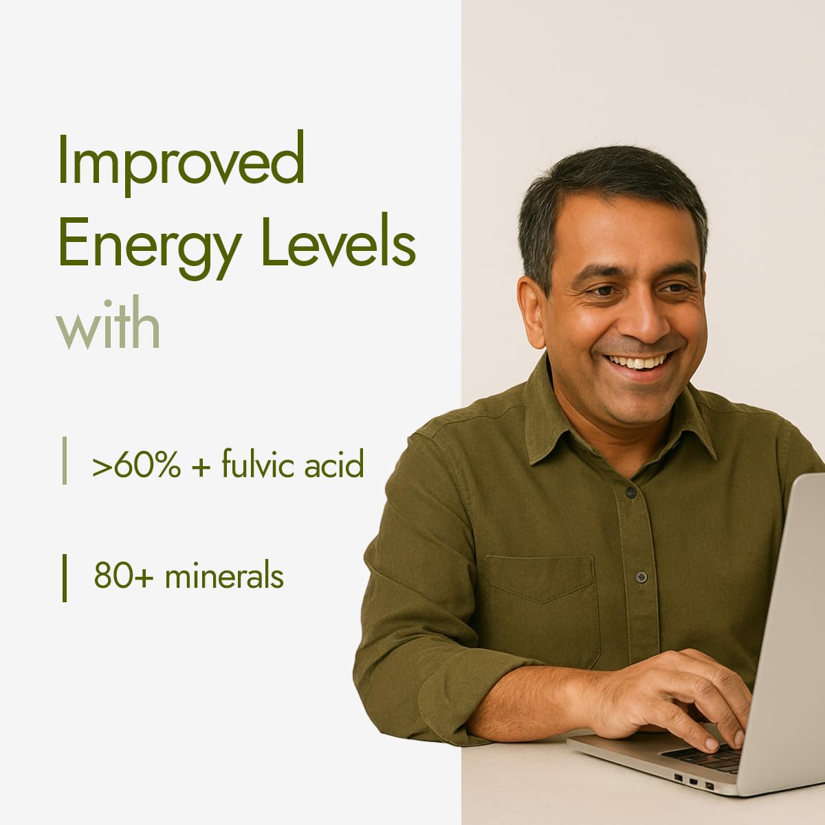 - 500mg Himalayan Shilajit per scoop – With more than 60% Fulvic acid and 80+ Minerals helps to boost energy naturally.