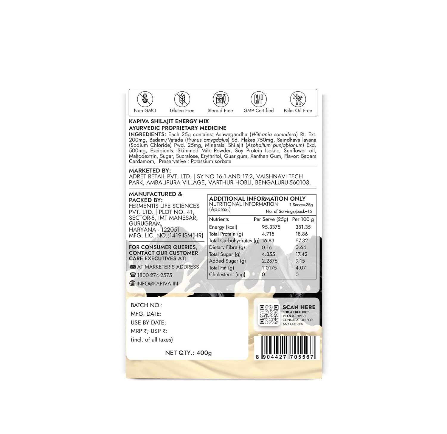 Kapiva Shilajit Energy Mix | Badam Flavour | Energy Drink for Men | Natural Nutritional Supplement |60% + Fulvic Acid, 80+ Minerals | Pure Himalayan Shilajit, Ashwagandha, 5g Protein | Improves Daily Energy, Stamina and Focus| 400g