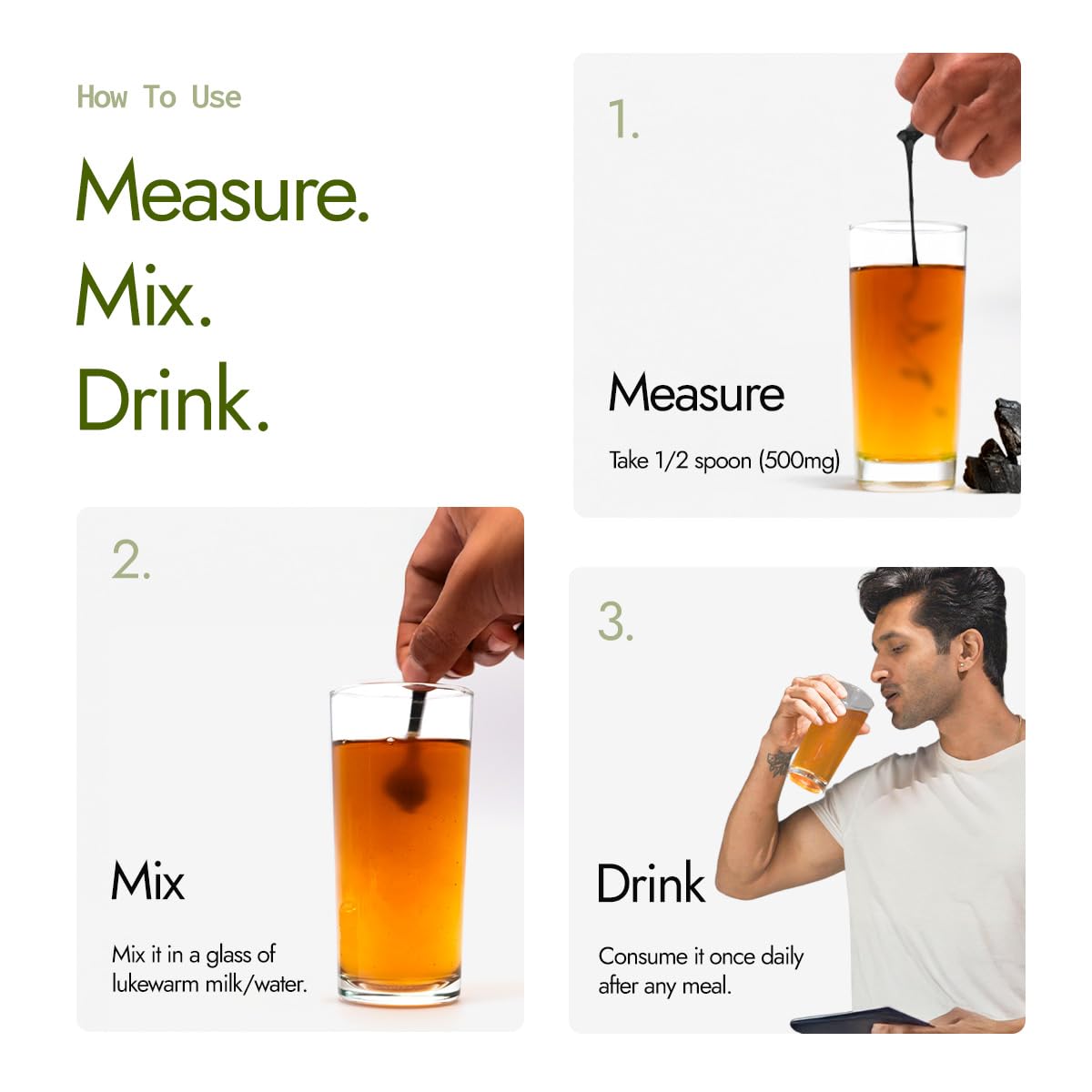 - Take 1/2 spoon (500 mg) of the resin, mix it with lukewarm water or milk, and consume once daily after any meal. Use regularly for 3 months for best results.
