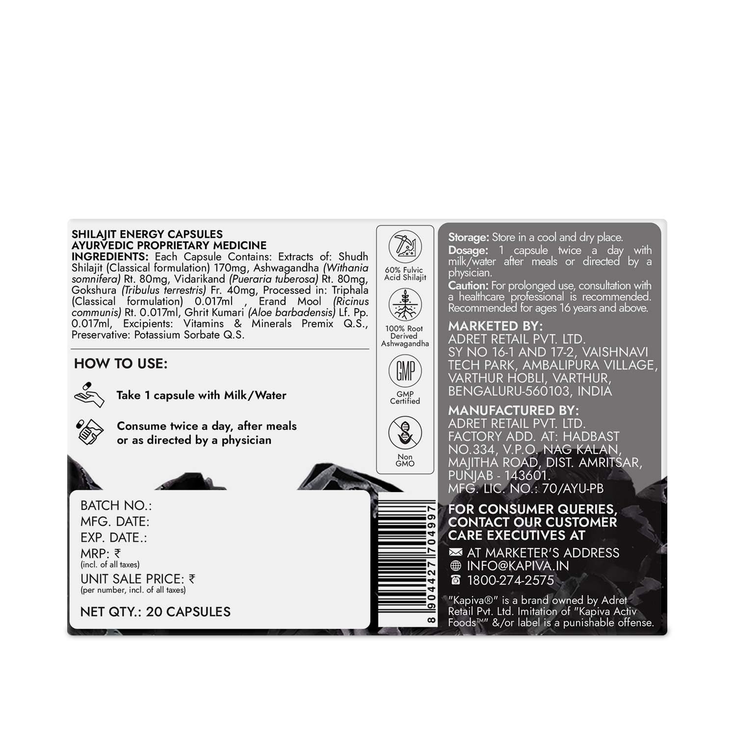- 100% VEGETARIAN Capsules: Kapiva Shilajit Energy capsules are 100% vegetarian