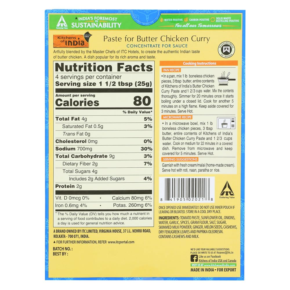 Kitchens of India, Paste For Butter Chicken Curry, Concentrate For Sauce, Medium, 3.5 oz (100 g)