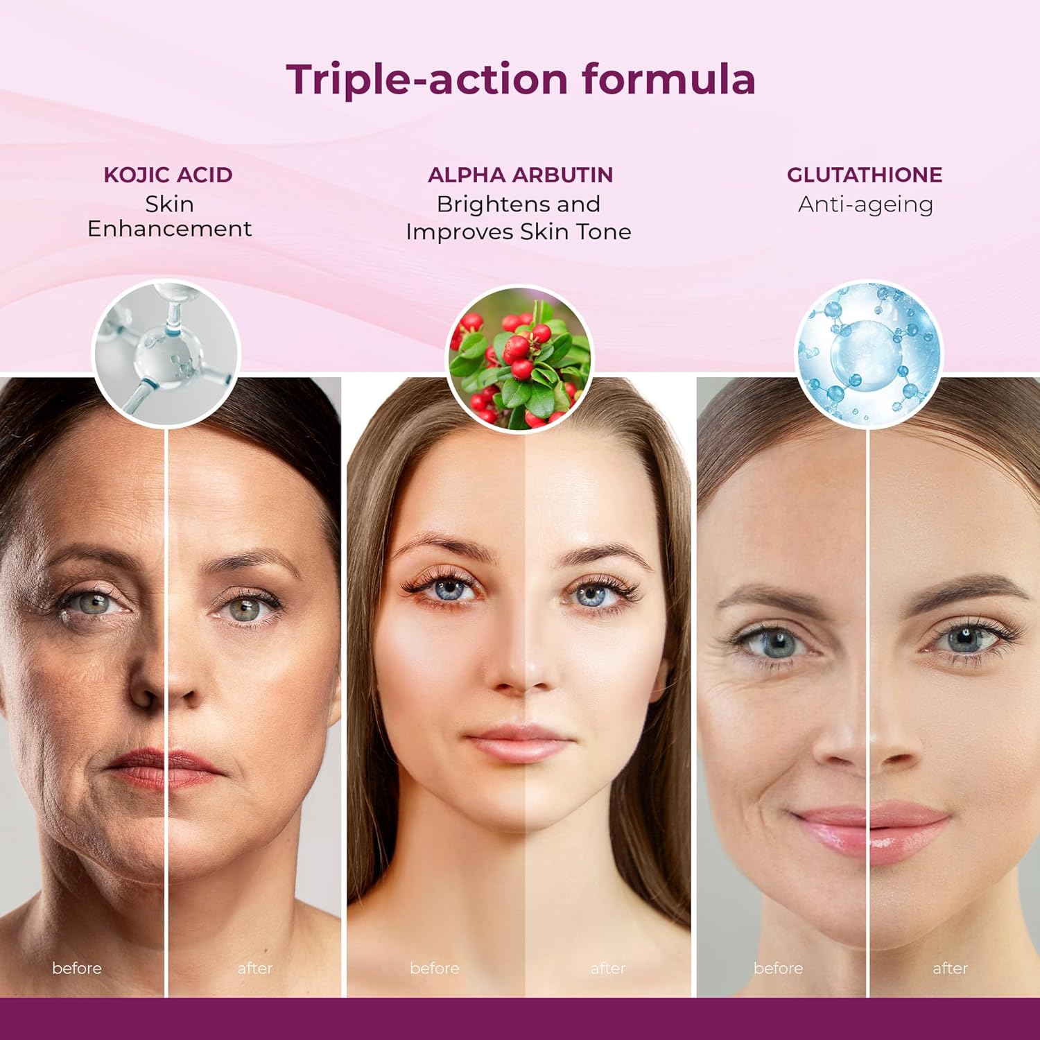0.50% kojic acid, 0.50% arbutin, 0.50% vitamin c, 0.50% vitamin e, 0.30% glutathione