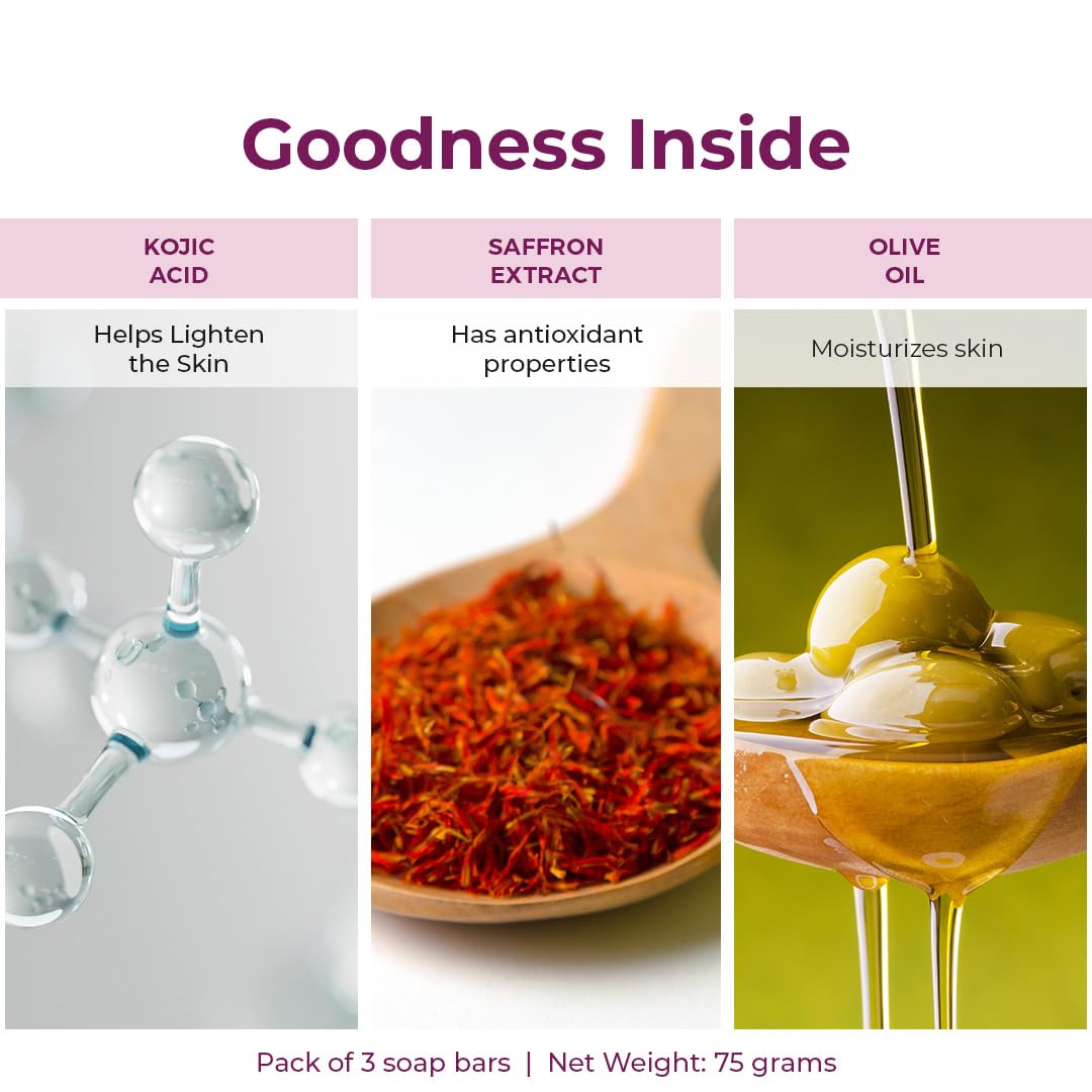 KOZICARE Saffron Soap|Skin Brightening&Dark Spot Remover|Real Saffron,Olive Oil,And Kojic Acid Formula|For Face&Body|Smooth,Acne,Scars,Uneven Skin Tone -75Gm(Pack Of 3)